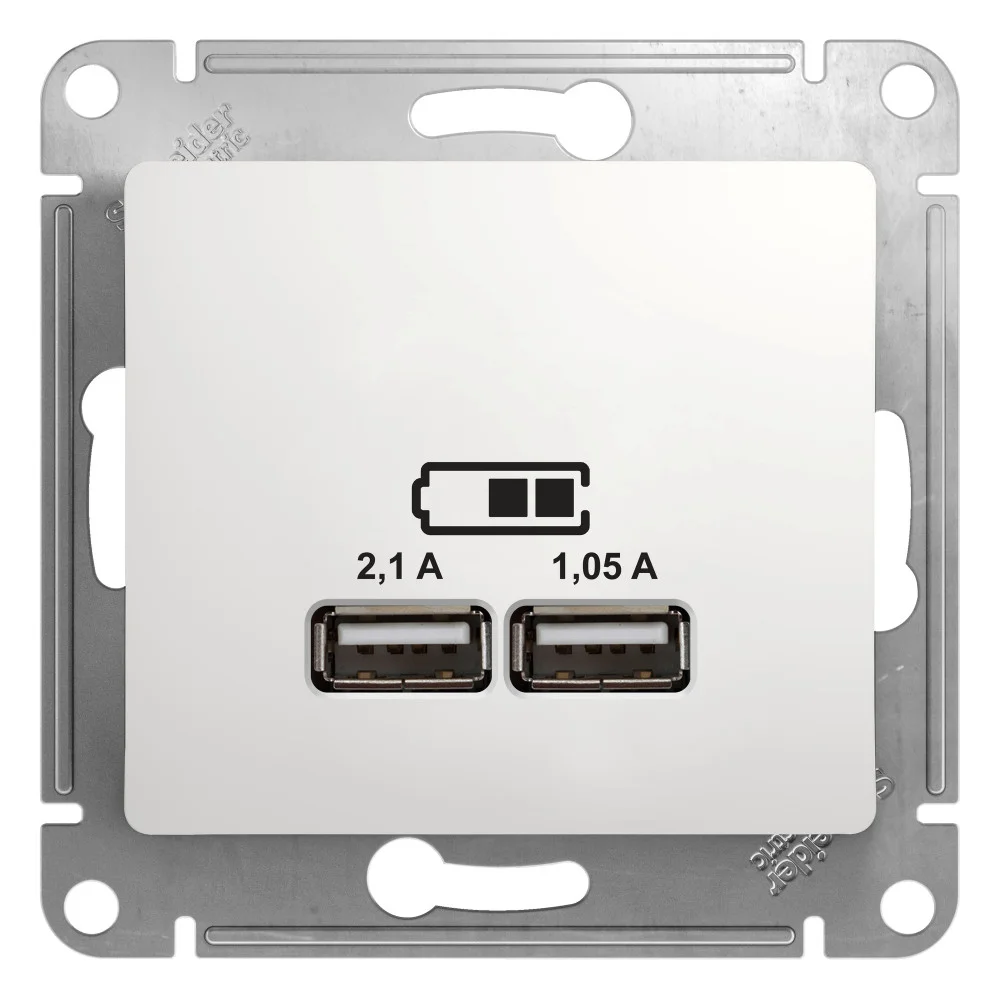 Механизм Systeme Electric (ранее Schneider Electric) серии Glossa (цвет белый) розетки с двумя разъёмами USB с выходными напряжением 5 В постоянного тока и выходами с номинальным током по 2,1 А. — Предназначен для зарядки мобильных устройств: телефоны, планшетные компьютеры, mp3/mp4 плееры. — Может заряжать одно или два устройства одновременно. — Выполнен из материала PС+ASA, стойкого […]