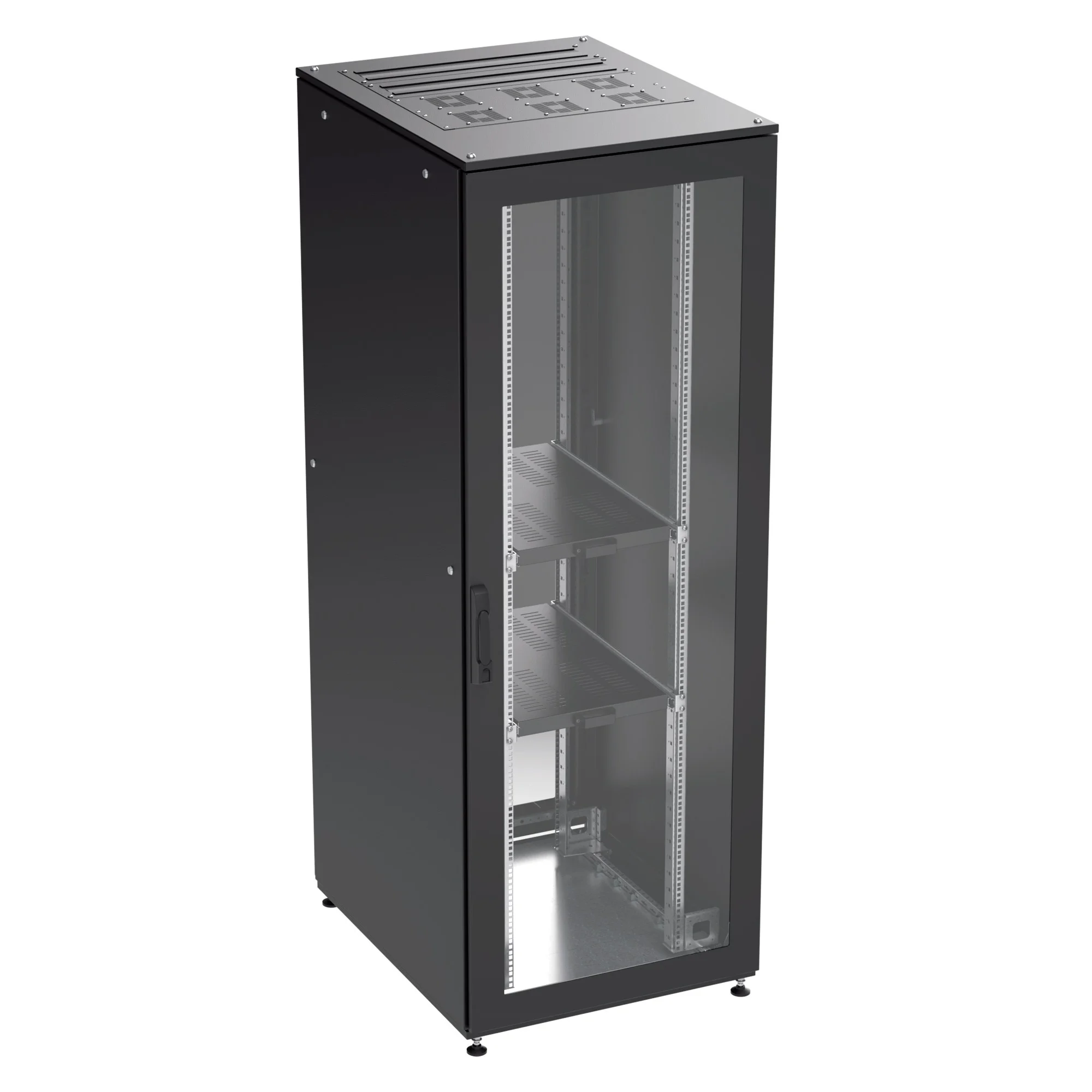 DKC Собранный напольный 19″ IT-CQE, 42U 600х600 двери стекло/сплошная, RAL 9005