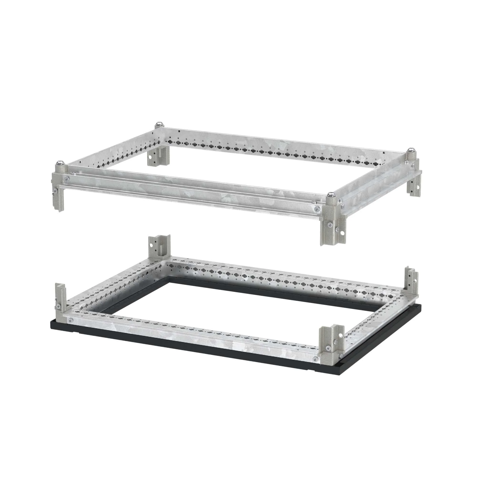 Комплект оцинкованной рамы крыши и дна для соединения с вертикальными стойками и сборки напольных шкафов CQE N шириной 1000 и глубиной 600 мм. Юбка дна окрашена в черный цвет RAL9005.