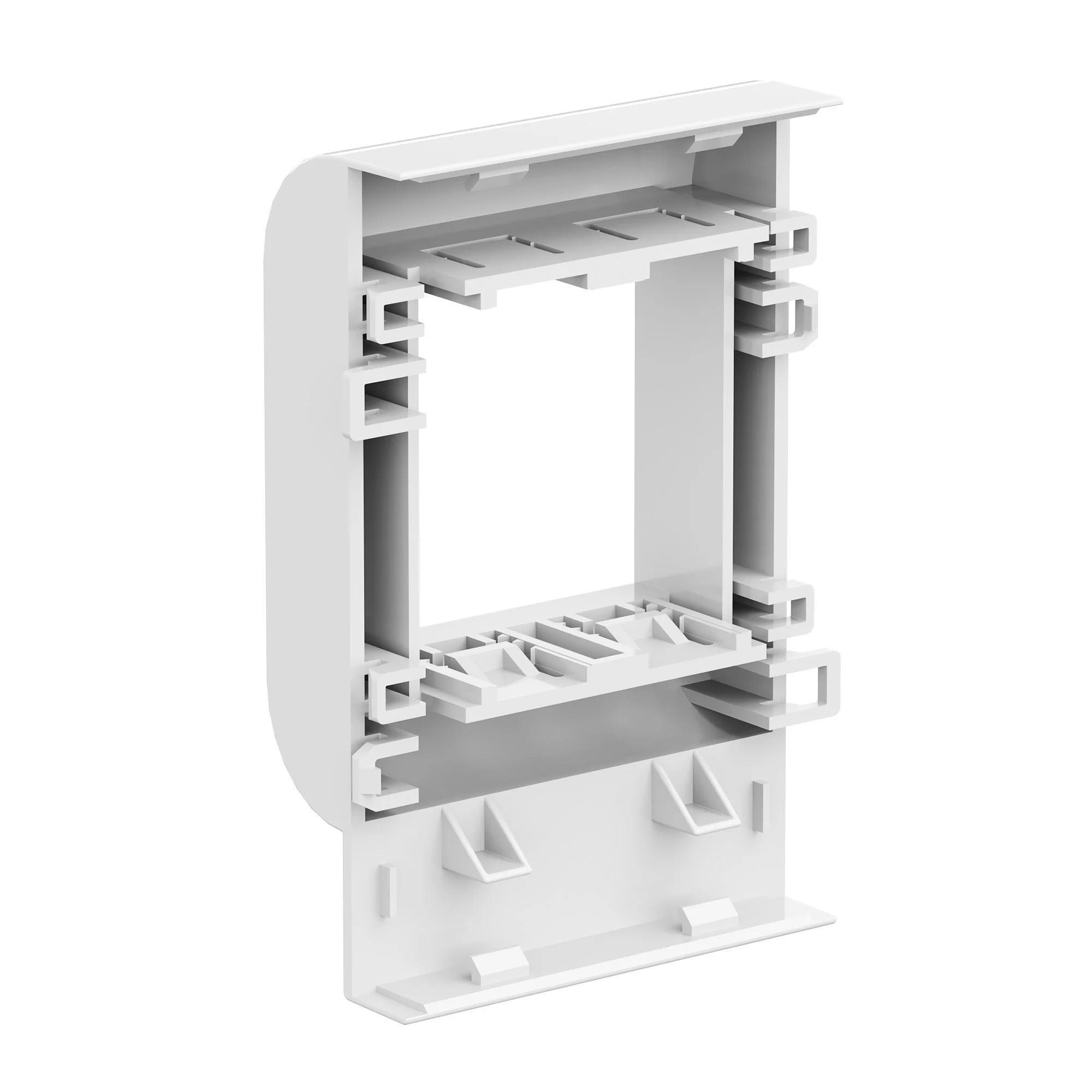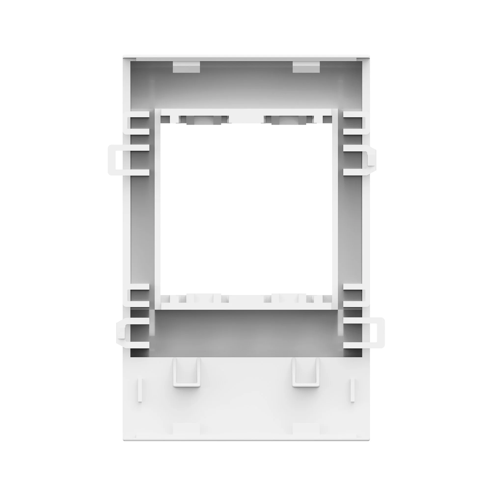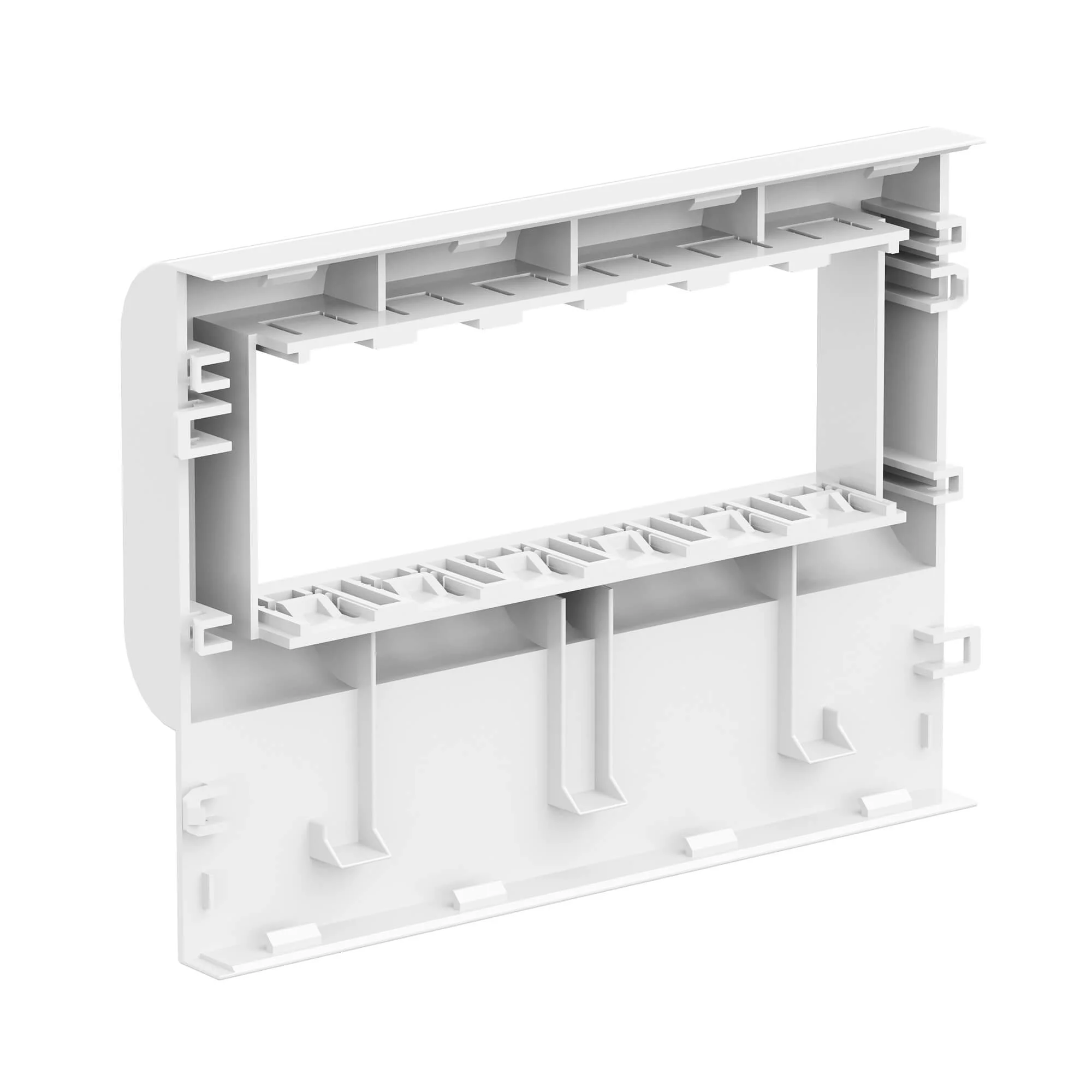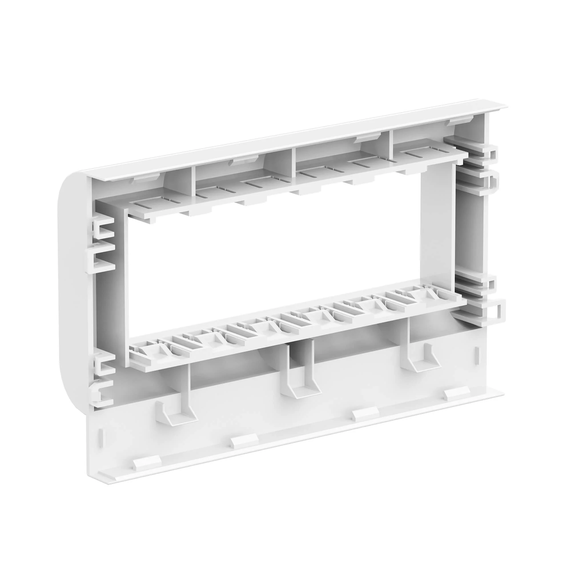 Рамка-суппорт на 6 модулей, PDA-ЗDN. Назначение: организация рабочих мест − монтаж электроустановочных изделий в пластиковые короба, тип TA-GN серии «In-liner Classic». Монтаж: монтаж суппорта внутри короба с помощью защелкивания, монтаж электроустановочных изделий в рамку − защелкиванием снаружи. Характеристики: материал – АБС-пластик и поликарбонат. Комплектация: рамка; суппорт. Типоразмер короба: 80х40, 80х60. Цвет: белый