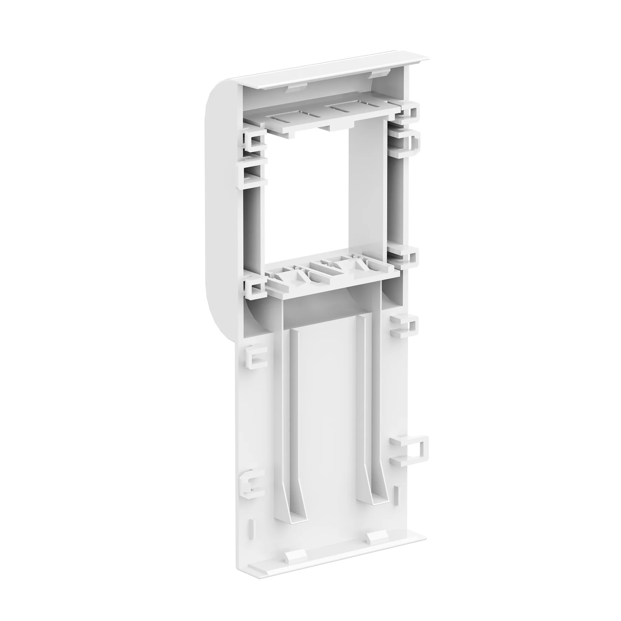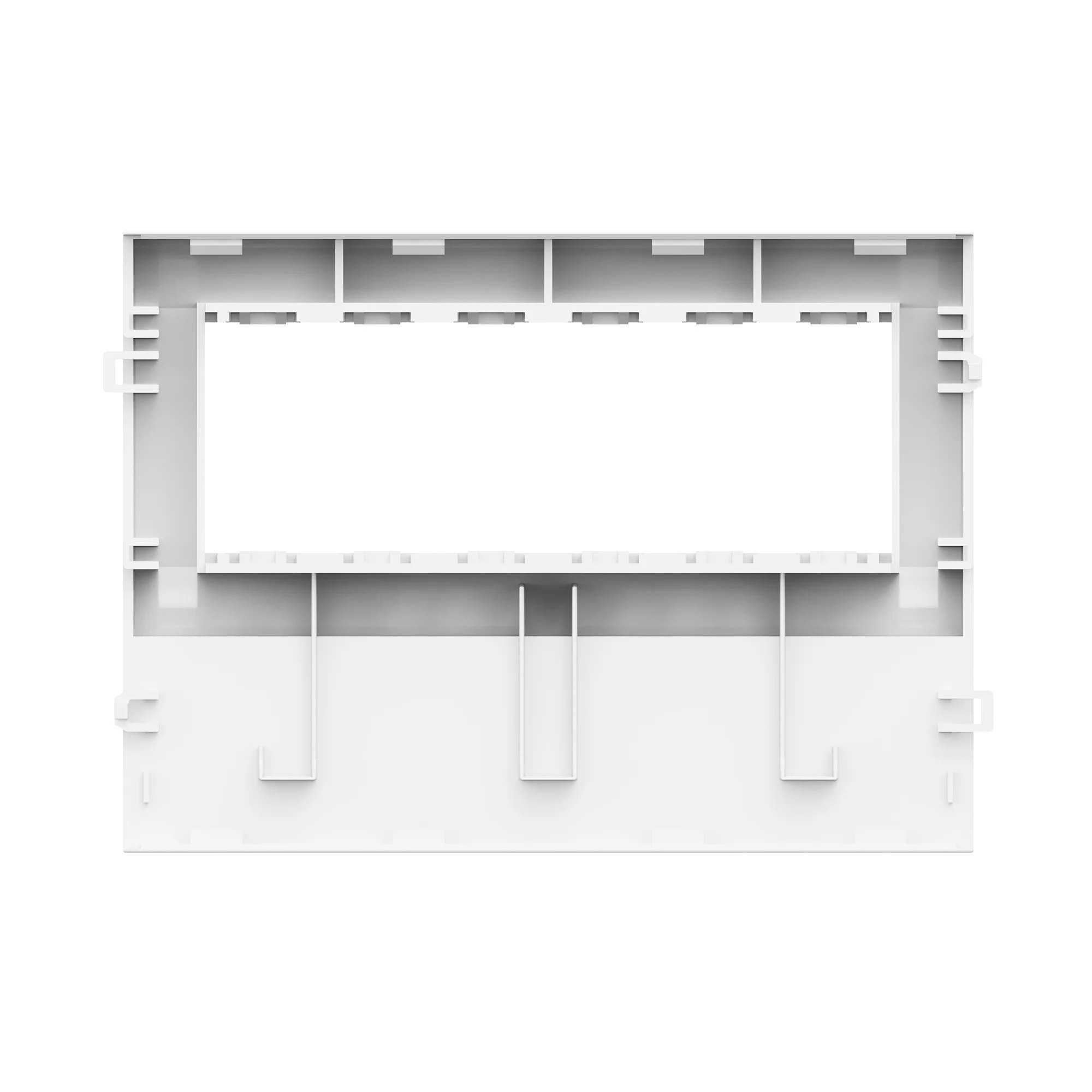 Рамка-суппорт на 6 модулей, PDA-ЗDN. Назначение: организация рабочих мест − монтаж электроустановочных изделий в пластиковые короба, тип TA-GN серии «In-liner Classic». Монтаж: монтаж суппорта внутри короба с помощью защелкивания, монтаж электроустановочных изделий в рамку − защелкиванием снаружи. Характеристики: материал – АБС-пластик и поликарбонат. Комплектация: рамка; суппорт. Типоразмер короба: 100х40, 100х60, 100х80. Цвет: белый