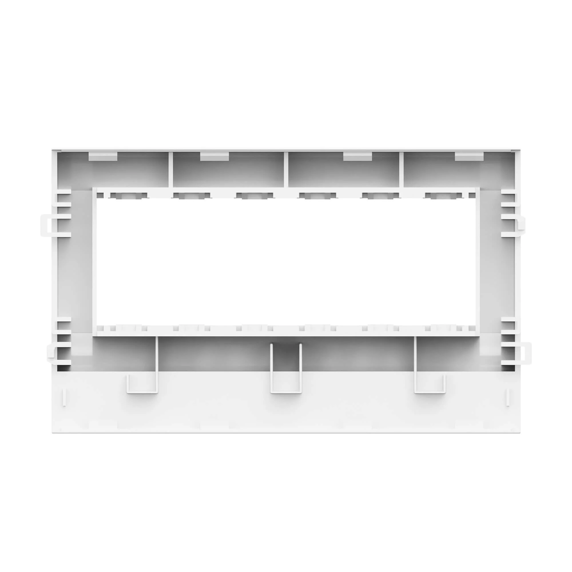 Рамка-суппорт на 6 модулей, PDA-3BN. Назначение: организация рабочих мест − монтаж электроустановочных изделий в пластиковые короба, тип TA-GN серии «In-liner Classic». Монтаж: монтаж суппорта внутри короба с помощью защелкивания, монтаж электроустановочных изделий в рамку − защелкиванием снаружи. Характеристики: материал – АБС-пластик и поликарбонат. Комплектация: рамка; суппорт. Типоразмер короба: 100х40, 100х60, 100х80. Цвет: белый