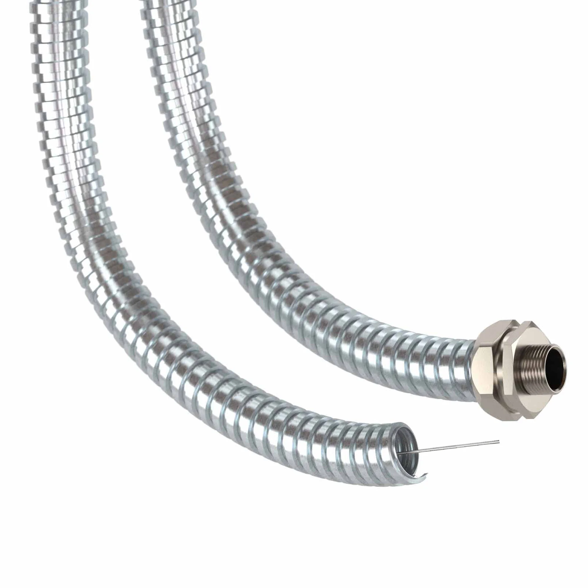 Муфта двойной фиксации служит для соединения гладкой стальной трубы с металлорукавом в стальной оплетке. Предназначена для соединения с металлорукавом диаметром 20 мм. Материал – никелированная латунь. Температура эксплуатации – от –40 до +80 °С. Герметизации – IP 66/ IP 67.
