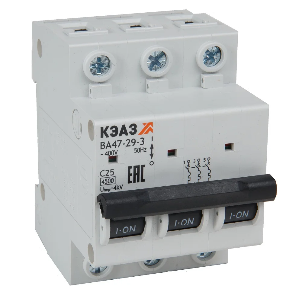 Модульный автоматический 3 полюсный выключатель переменного тока с предельной коммутационной способностью при переменном токе 4.5 кА на номинальный ток 40 А .