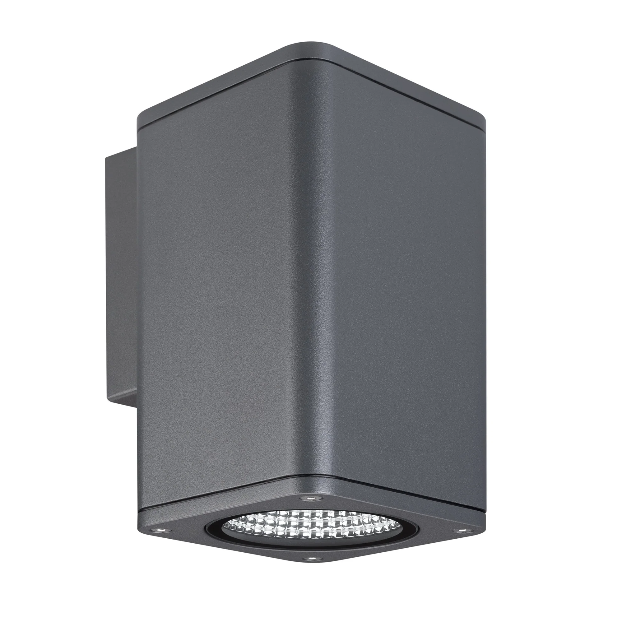 Накладной настенный светильник 12Вт, серый алюминиевый корпус, оптическое закаленное стекло. Цвет ДНЕВНОЙ 4000K, св.поток 950лм, CRI(Ra)>80, угол 44°, свет вверх или вниз. Размер ВхШхГ 138x100x132 мм. IP54. Питание AC230V, 12Вт, встроенный драйвер.