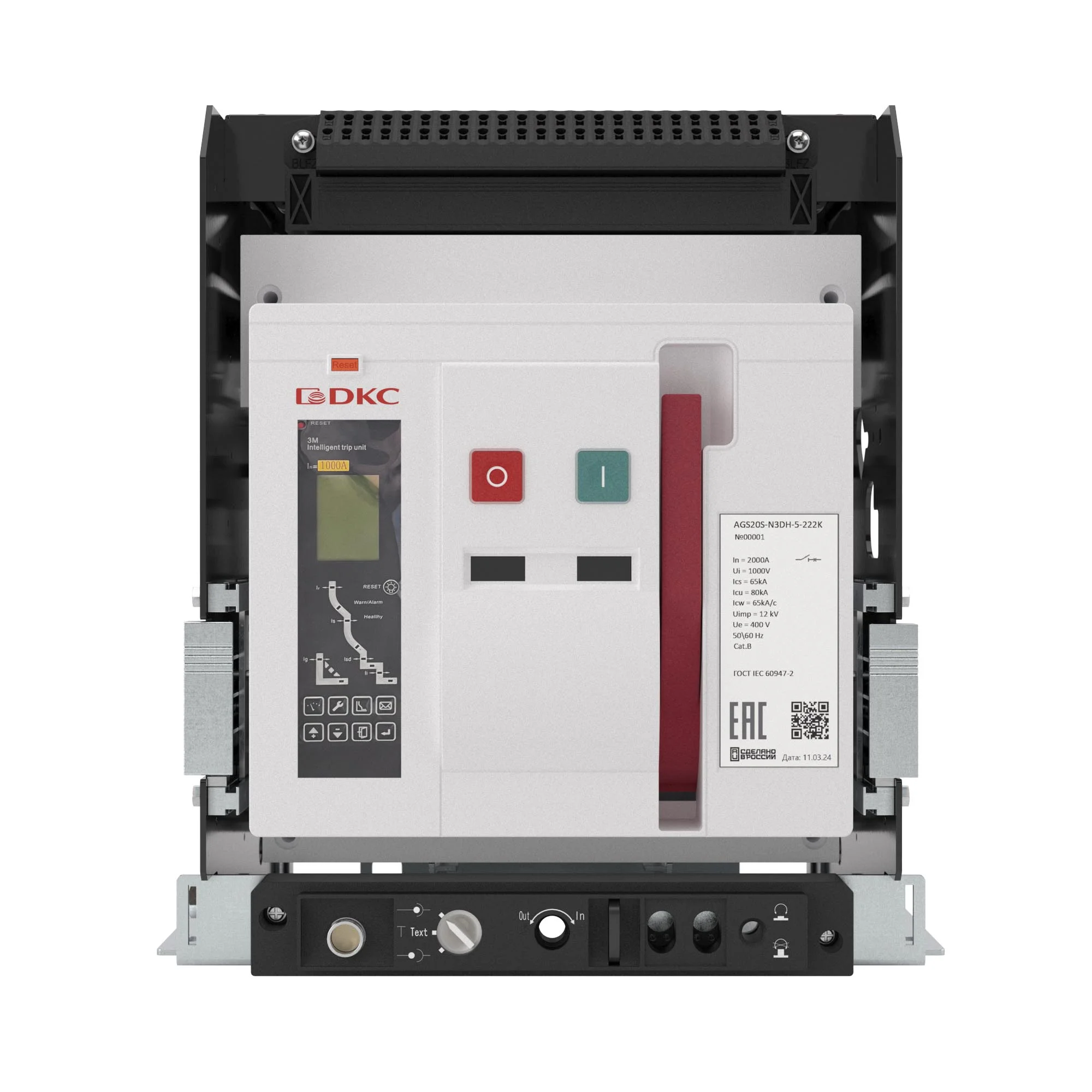 Воздушный автоматический выключатель серии YON max AGS предназначен для эксплуатации в сетях низкого напряжения до 415 В. Применяется для рабочих включений и отключений, а также для защит от перегрузок, короткого замыкания и замыкания на землю. Номинальный ток 2000 А, отключающая способность 80 kA, 3-х полюсный, выкатное исполнение, расцепитель 3H, управление ручное