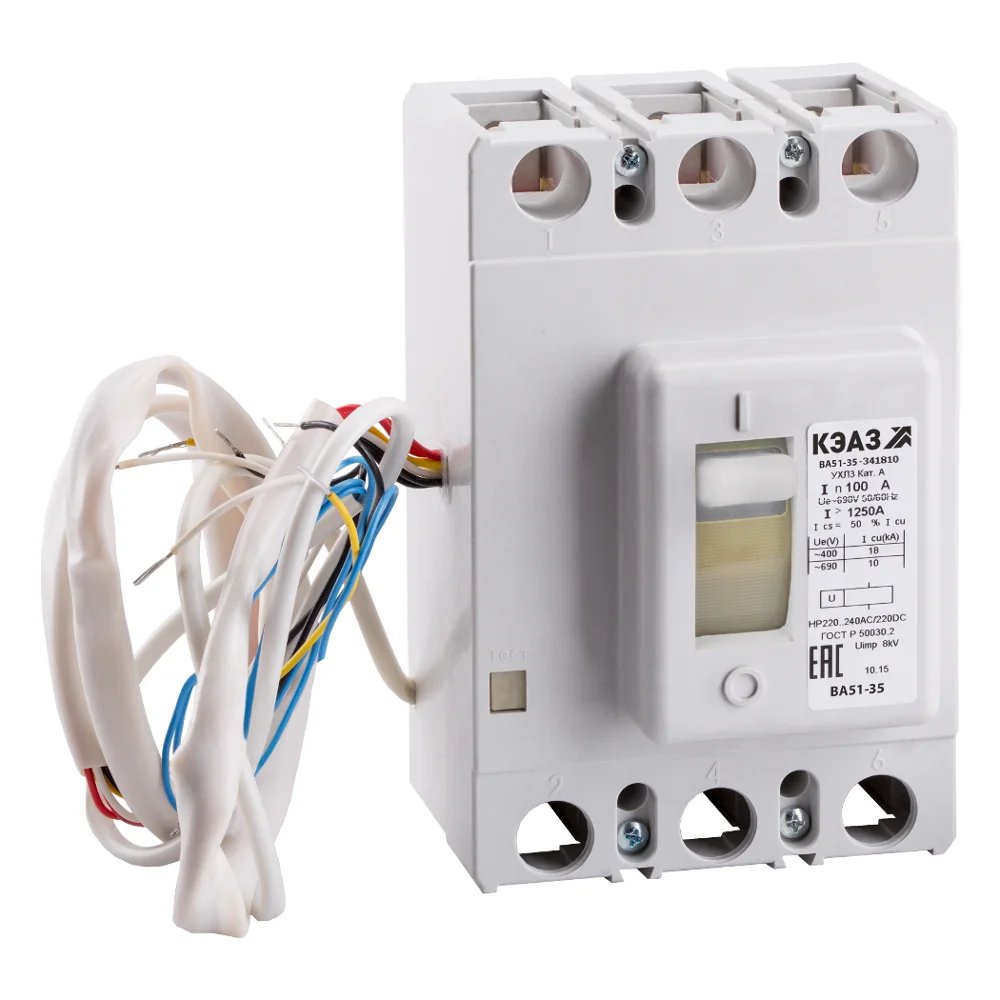 Блочный автоматический 3 полюсный выключатель постоянного тока с предельной коммутационной способностью при постоянном токе кА на номинальный ток 50 А .