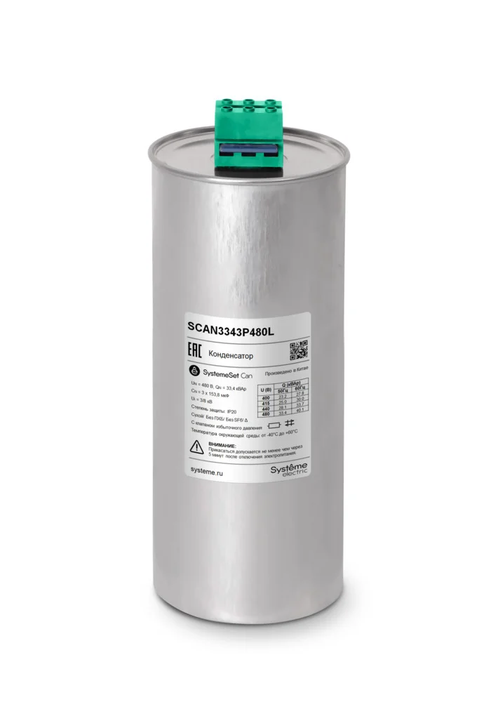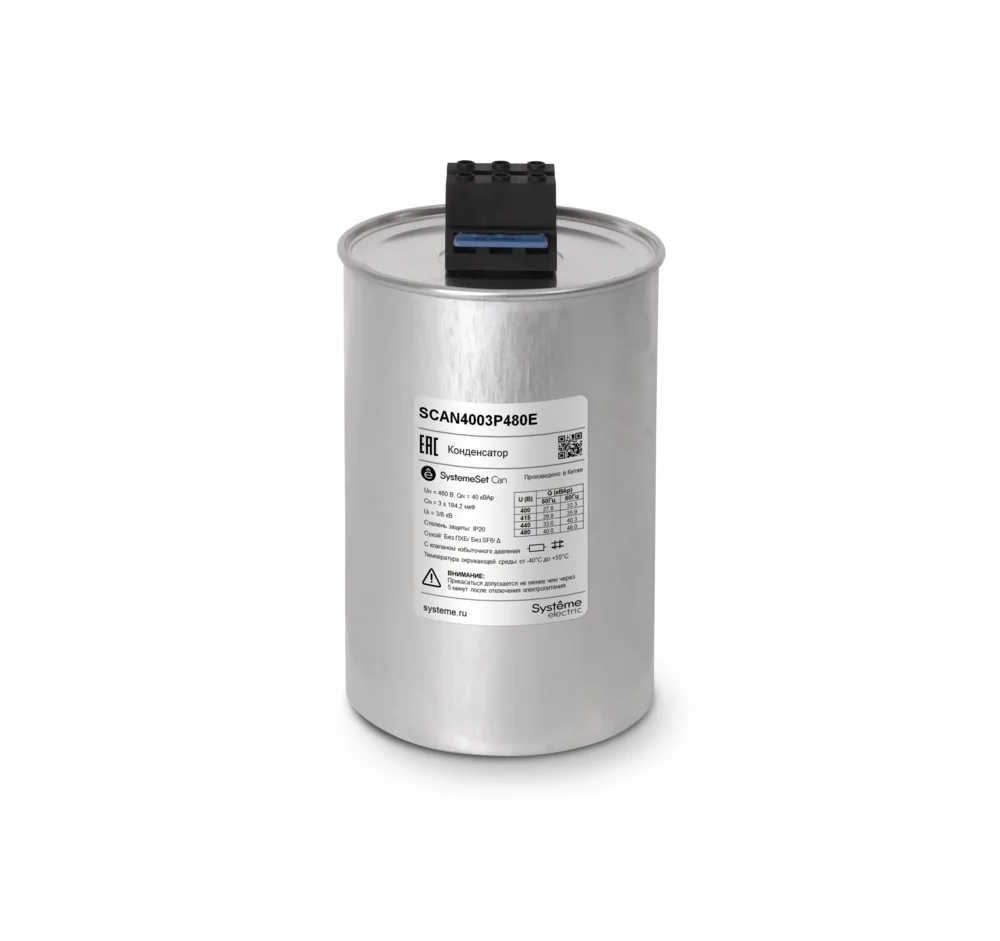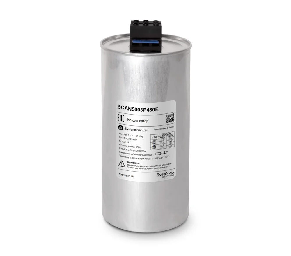 Низковольтный трёхфазный конденсатор торговой марки Systeme Electric серии SystemeSet типа Can предназначен для компенсации реактивной мощности. Силовой конденсатор представляет собой три однофазных конденсатора, собранных в единую конструкцию. В конденсаторах в качестве диэлектрика используется металлизированная полипропиленовая плёнка с функцией самовосстановления. В конструкцию конденсатора также входят: предохранитель с мембраной избыточного давления, клеммный блок с разрядным резистором. Корпус […]