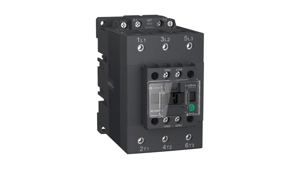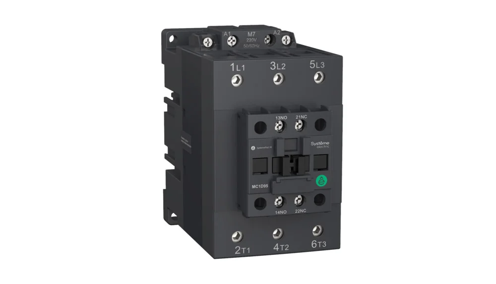 Контактор серии SystemePact MC1D на номинальный ток 95 А, 3P, 1НО+1НЗ; напряжение управления – 24 В пер.тока; крепеж – на DIN-рейке или монтажной плате. Контакторы серии SystemePact MC1D разработаны для управления двигателями различных типов, а также насосами, лифтов и системами вентиляции. Они имеют увеличенный электрический и механический ресурс; могут оснащаться дополнительными контактами, тепловыми реле, механическими […]