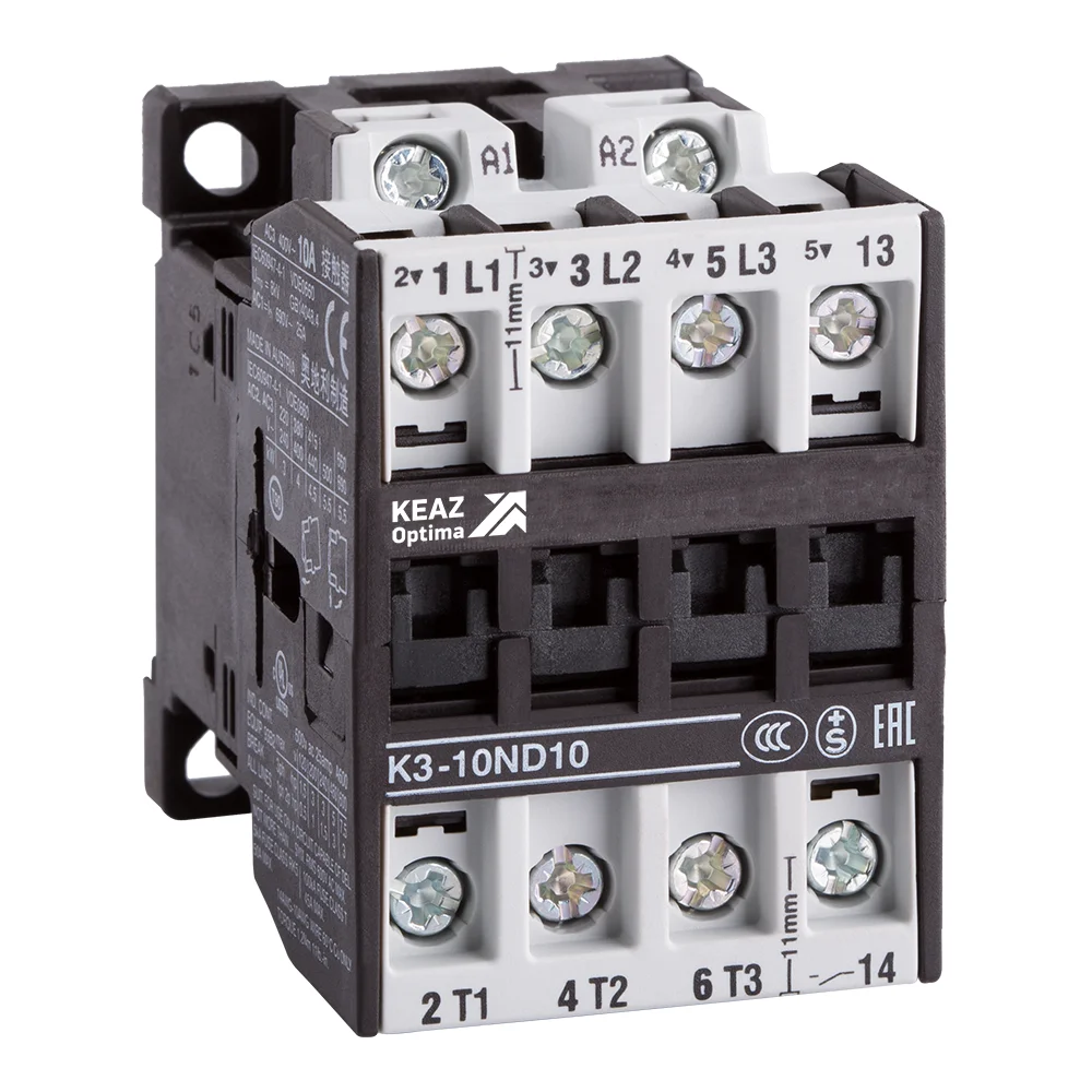 Контактор на номинальный ток 22 А с катушкой управления переменного тока напряжением 230 В.