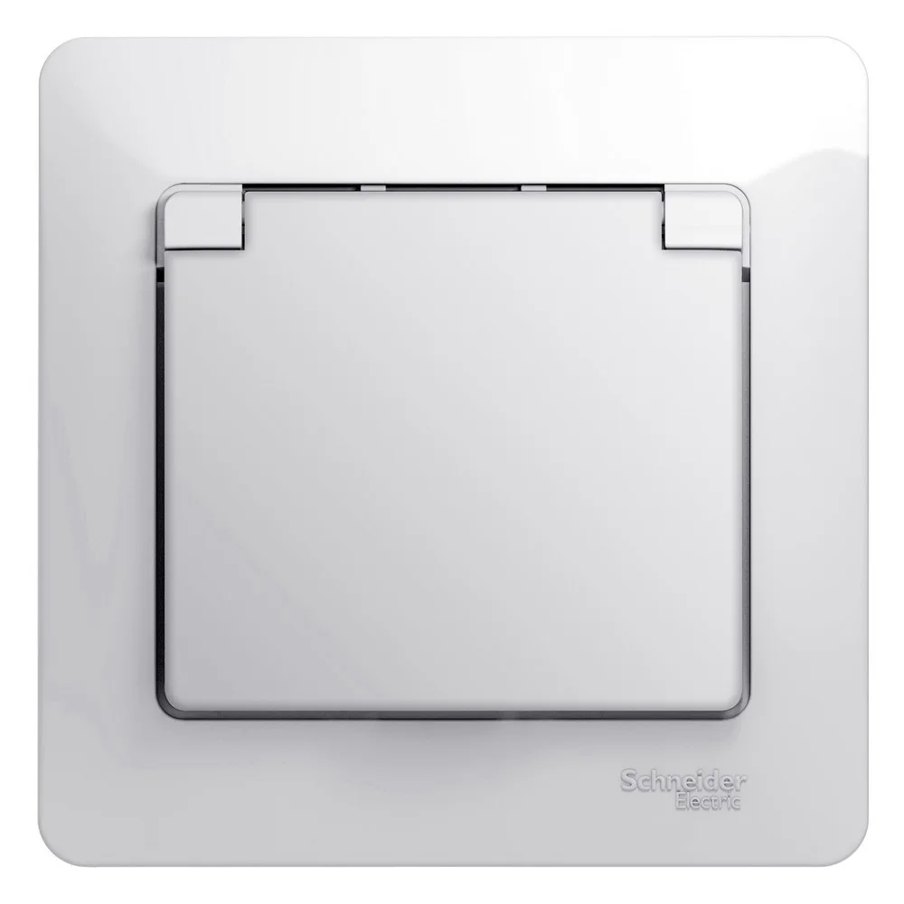 Systeme Electric Glossa Бел Розетка с/з со шторками с крышкой, IP20 (в сборе с рамкой)