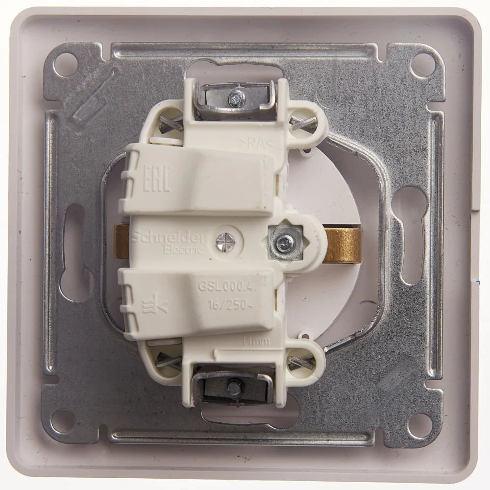 Розетка Systeme Electric (ранее Schneider Electric) серии Glossa (в сборе, цвет белый) одинарная с заземлением, шторками и крышкой подходит для сетей 250 В, на ток 16 А. — Заземляющий контакт обеспечивает дополнительную защиту от удара электрическим током. При наличии заземления электрический потенциал уходит в землю, защищая человека. — Выполнен из материала PС+ASA, стойкого к УФ-излучению […]