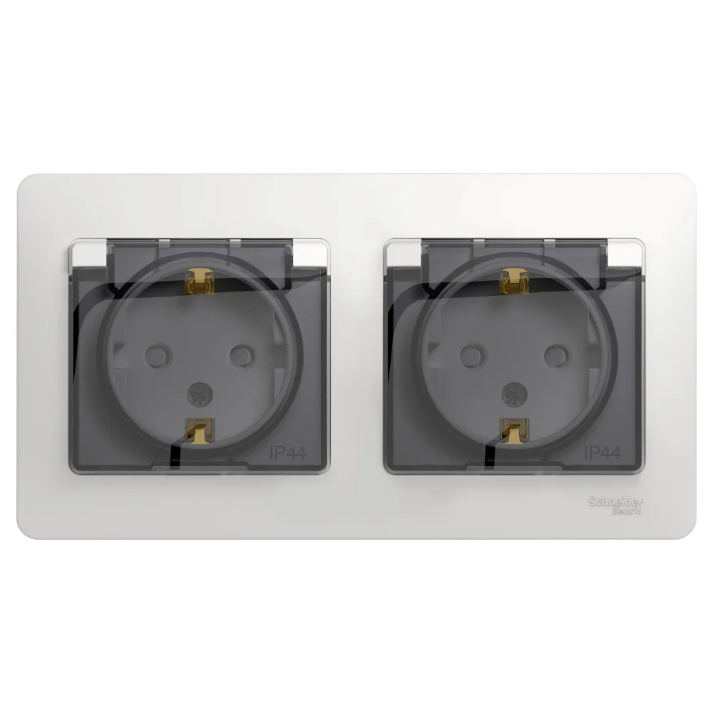 Systeme Electric Glossa Бел Розетка 2-ая с/з, со шторками, в сборе, IP44