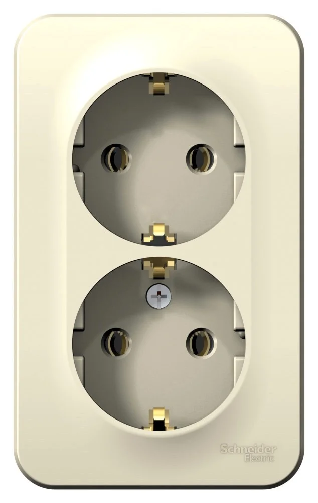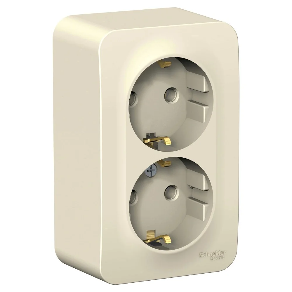 Розетка Systeme Electric (ранее Schneider Electric) BLANCA (открытой установки, цвет бежевый) двухместная с заземлением без шторок, с изолирующей пластиной подходит для сетей 250 В, на ток 16 А. — Заземляющий контакт обеспечивает дополнительную защиту от удара электрическим током. При наличии заземления электрический потенциал уходит в землю, защищая человека. -Корпус изделия выполнен из ABS-пластика.