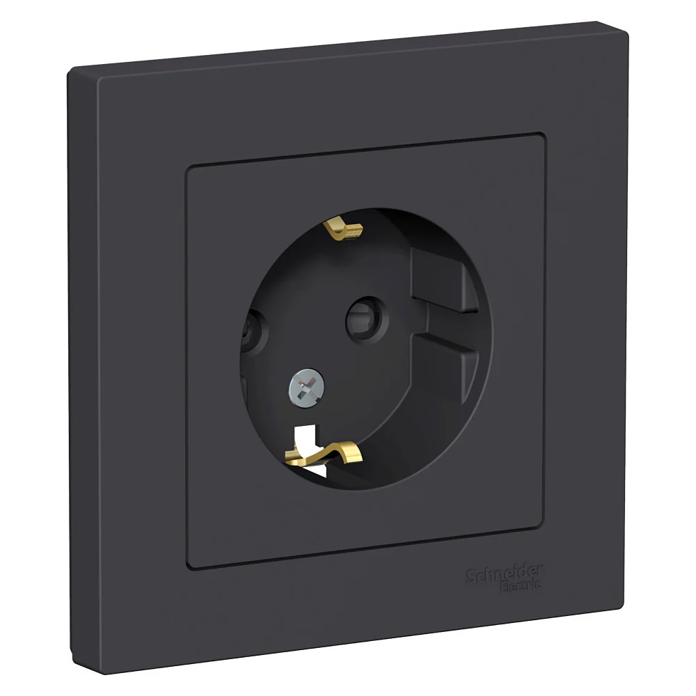 Systeme Electric AtlasDesign Карбон Розетка с/з со шторками, 16А, в сборе