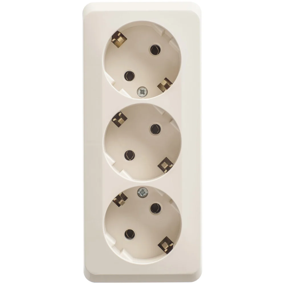 Розетка Systeme Electric (ранее Schneider Electric) ЭТЮД (кремовый, открытой установки) трёхместная с заземлением, без шторок предназначена для применения в сетях до 250В, на ток до 16А. Трёхместная розетка позволяет подключить три устройства в одном месте. Заземление обеспечивает безопасность при косвенном прикосновении. Она проста в установке и удобна в применении. Сделано в России.