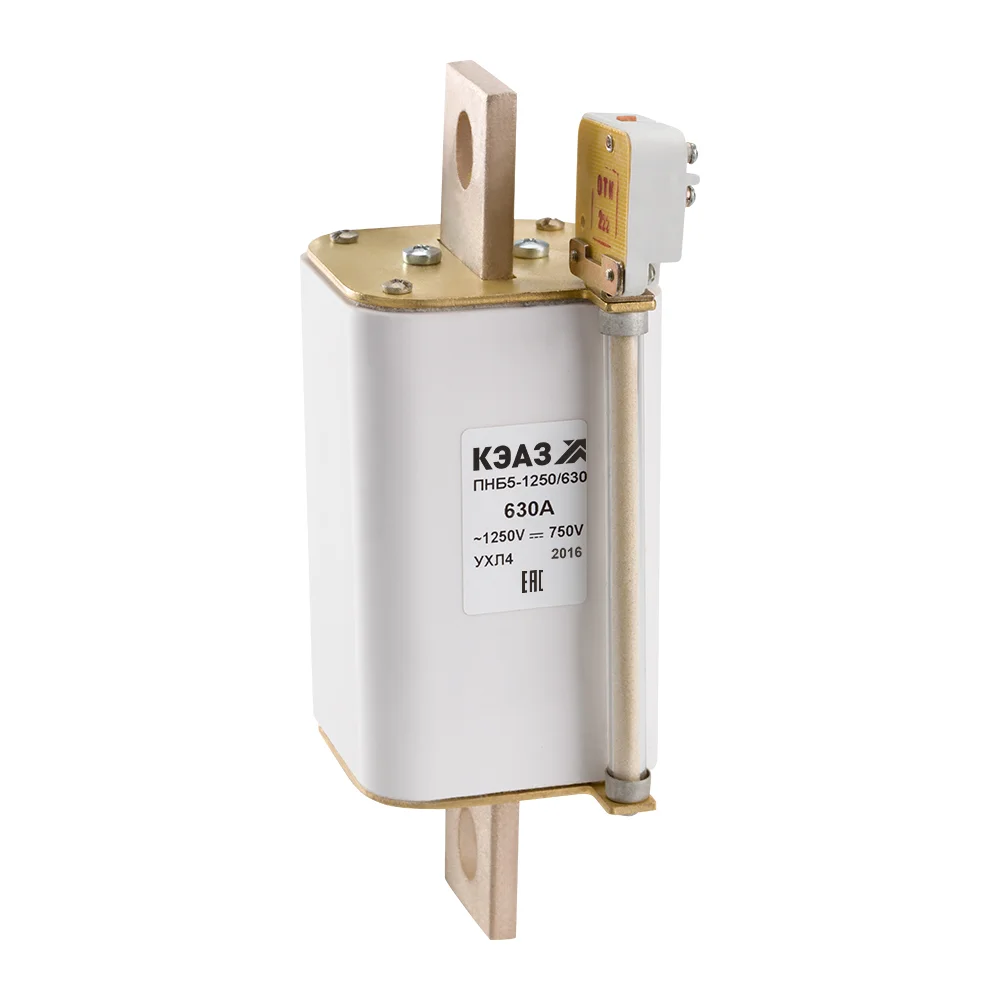 Предохранитель ножевого типа на номинальный ток 630 А, габаритом 4 и потерями мощности 48 Вт.