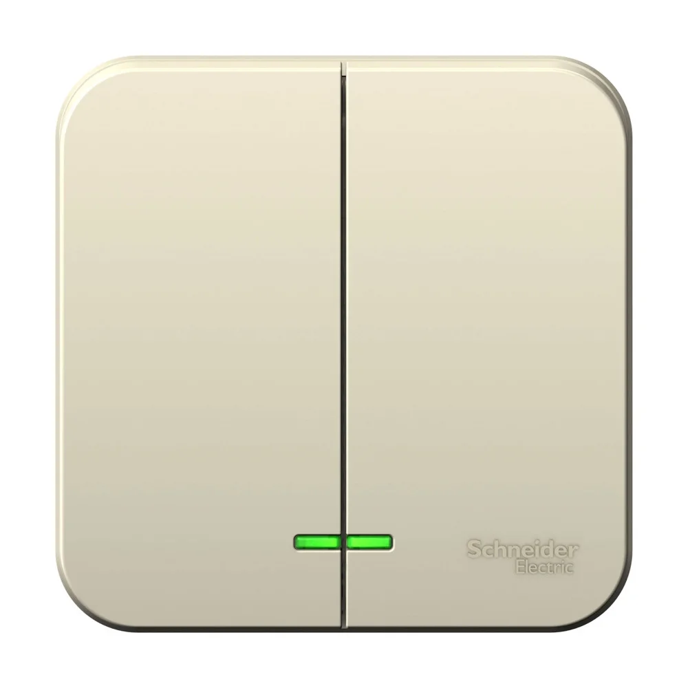 Выключатель Systeme Electric (ранее Schneider Electric) BLANCA (молочный, открытой установки) двухклавишный с изолирующей пластиной предназначен для сетей до 250В, на ток до 6А. Подсветка делает его легко находимым в отсутствие освещения. Двухклавишный выключатель позволяет управлять двумя источниками света из одной точки.