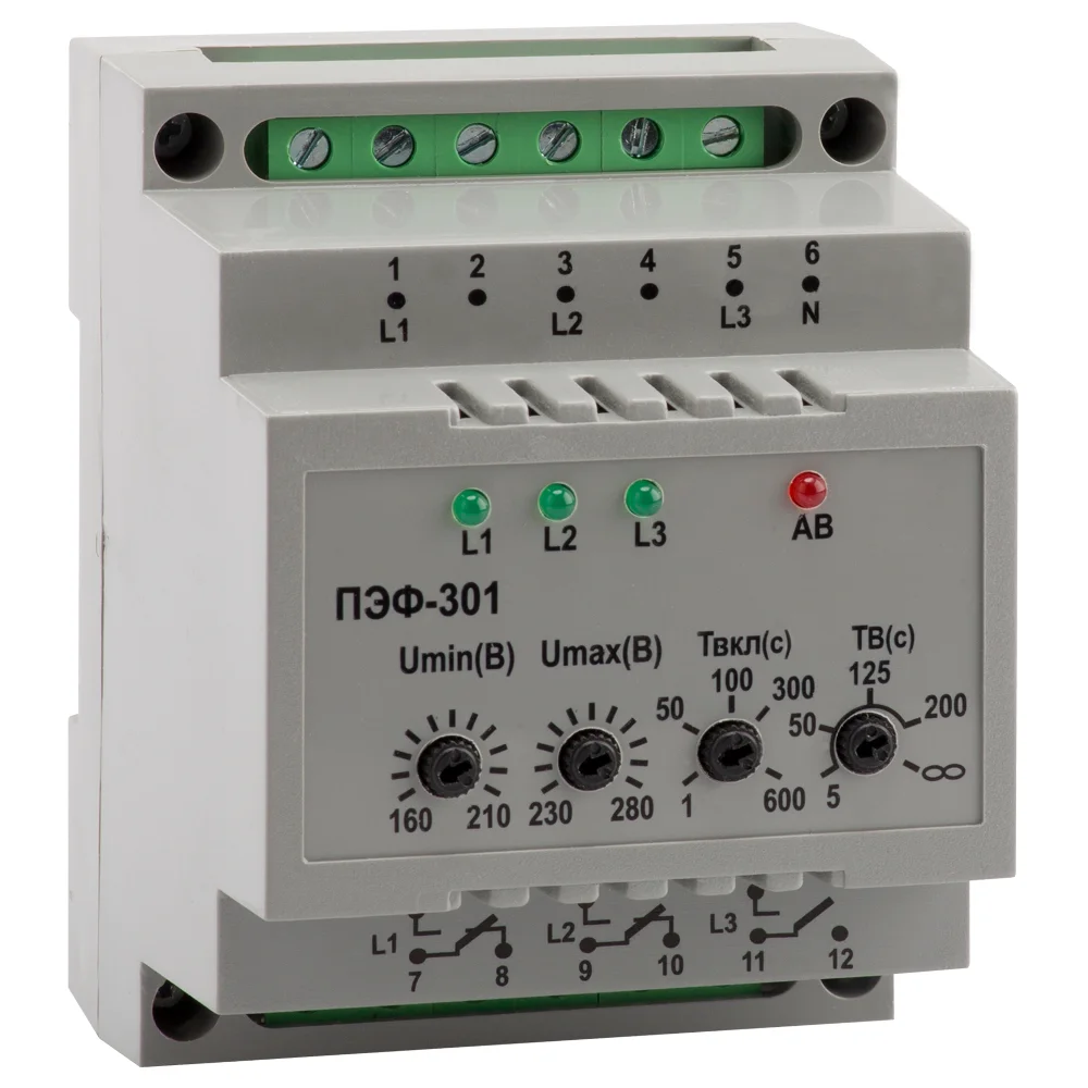 Реле выбора фаз модульное на 3 фазы питающей сети.