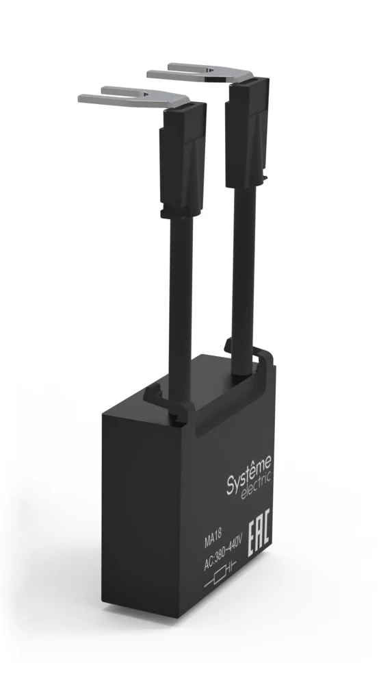 Модуль ограничения коммутационных перенапряжений для контакторов серии SystemePact MC1E на номинальный ток 40-65 А; тип – RC-фильтр; напряжение – 380…440 В; фронтальный монтаж. Модули ограничения перенапряжений обеспечивает эффективную защиту цепей, отличающихся высокой чувствительностью к высокочастотным и коммутационным помехам, генерируемым при отключении катушки контактора. Они увеличивает время отпускания контактора в 1,5-2 раза и ограничивают коммутационные перенапряжения.