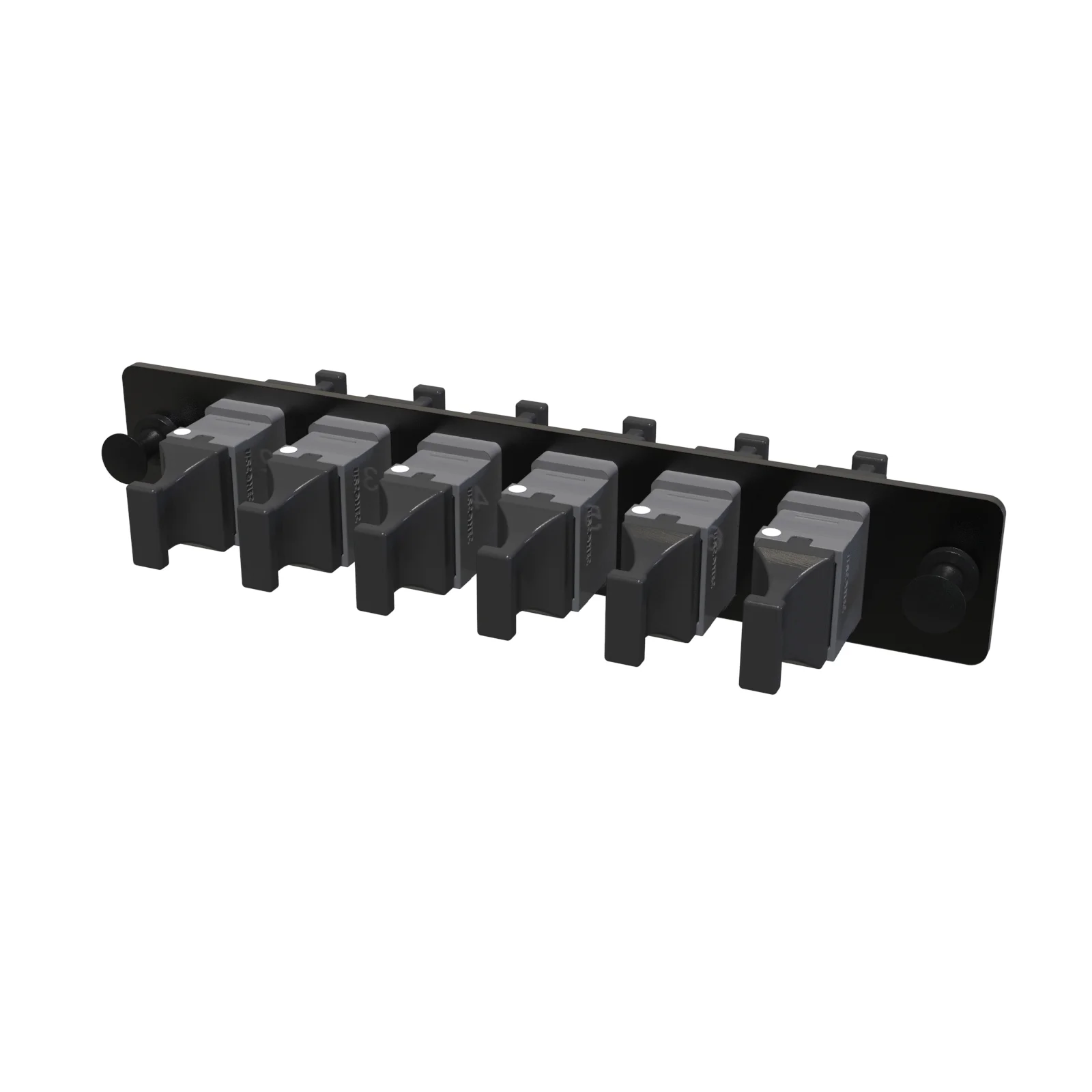 Адаптерная планка половинной высоты (до 8 планок в корпус) с шестью адаптерами LC Duplex UPC OS2 (цвет адаптеров — синий). Применяется для подключения оптических кабельных сборок 6xDuplex LC — 6xDuplex LC (код RNFLL12S**) для организации магистральных оптических линий между коммутационными или серверными шкафами. Не требуют сварки волокон. Максимальная плотность коммутационного поля. Планки устанавливаются с лицевой […]
