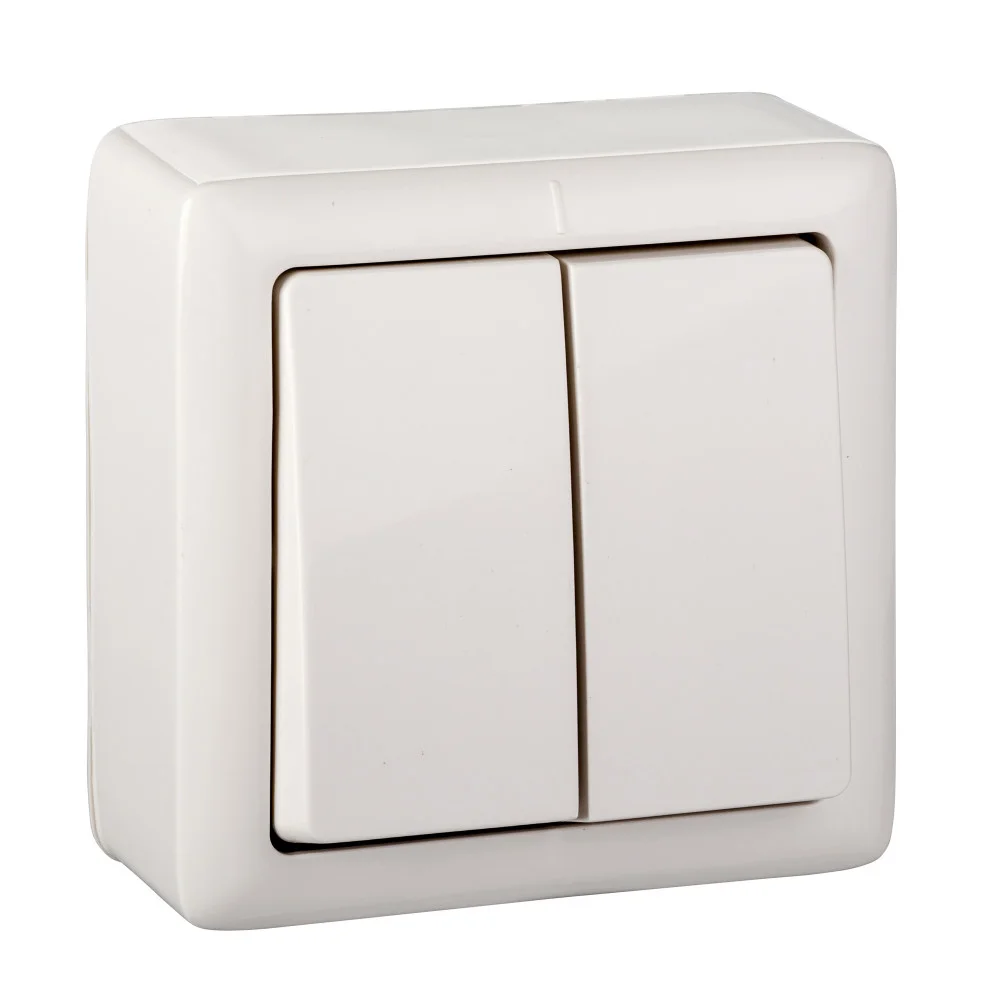 Systeme Electric ХИТ наруж Бел Выключатель 2-клавишный с изолирующей пластиной 6А, 250В