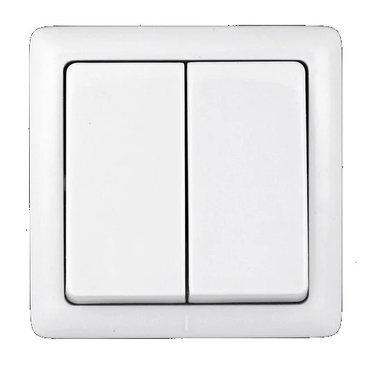 Выключатель двухклавишный Systeme Electric (ранее Schneider Electric) РОНДО (открытой установки, цвет белый) с изолирующей пластиковой пластиной предназначен для сетей до 250 В, на ток до 6 А. — Выключатель изготовлен из ABS-пластика, прост в установке, прочен и надежен в применении. — Двухклавишный выключатель позволяет управлять двумя источниками света с одной точки. — Сделано в России.