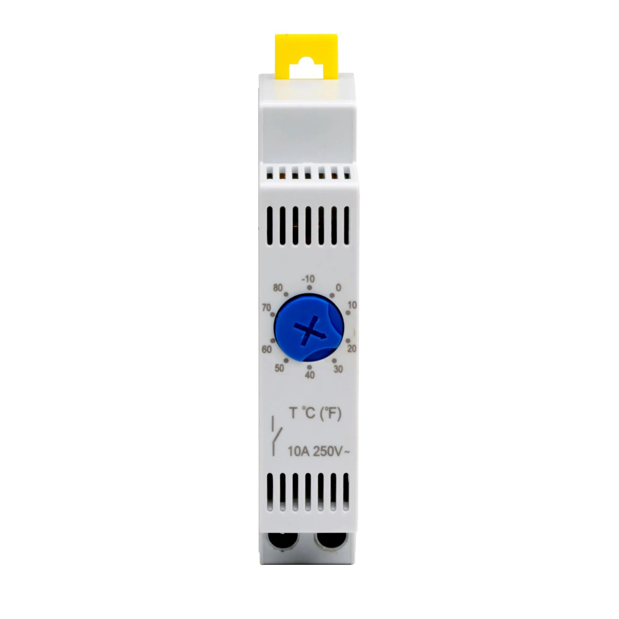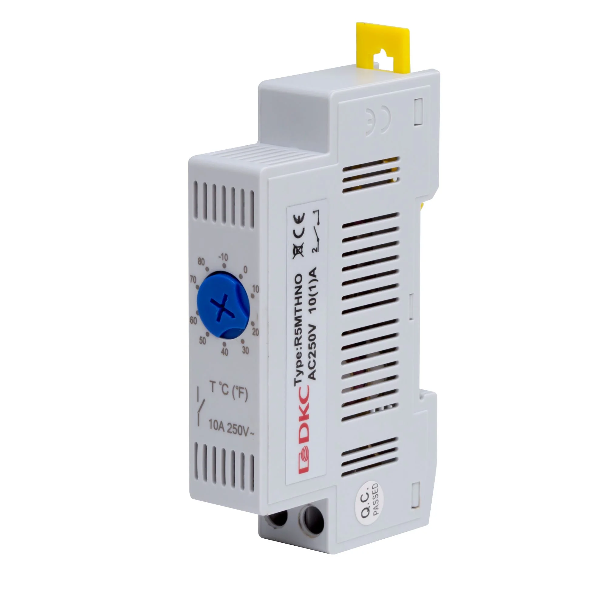 Термостат с широким диапазоном регулирования температур предназначен для автоматического контроля и поддержания заданной температуры внутри электротехнических шкафов. Прибор оснащен нормально открытым контактом (NO), который замыкается при достижении установленной температуры, обеспечивая эффективное управление микроклиматом. Термостат выполнен в современном дизайне, обладает отличной визуализацией и простой, понятной настройкой.