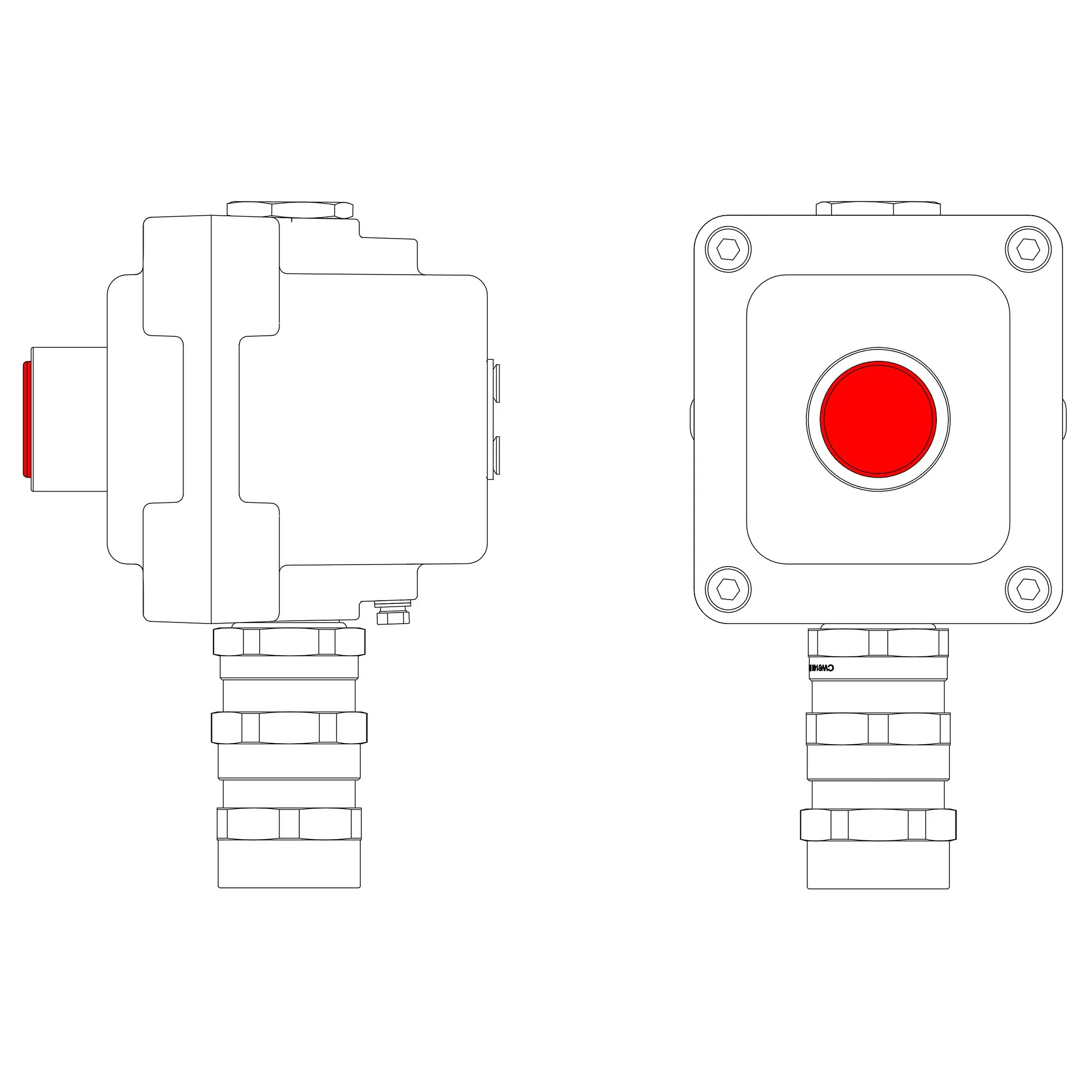 LCSD-01-B-MC-P6R(11)x1-PCMB-KA3MHK Взрывозащищенный местный пост управления из алюминия на 1 эл.управления. Маркировка: 1Ex d IIB T5 Gb / Ex tb IIIC T95°С Db / IP66 Температура окружающей среды: От -60°C до +40°C Элементы управления P6 – кнопка грибовидная с фиксацией, отпускание поворотом (размер Ø40 мм). Цвет красный — 1шт. Кабельные вводы Снизу: Взрывозащищенный кабельный ввод серии […]