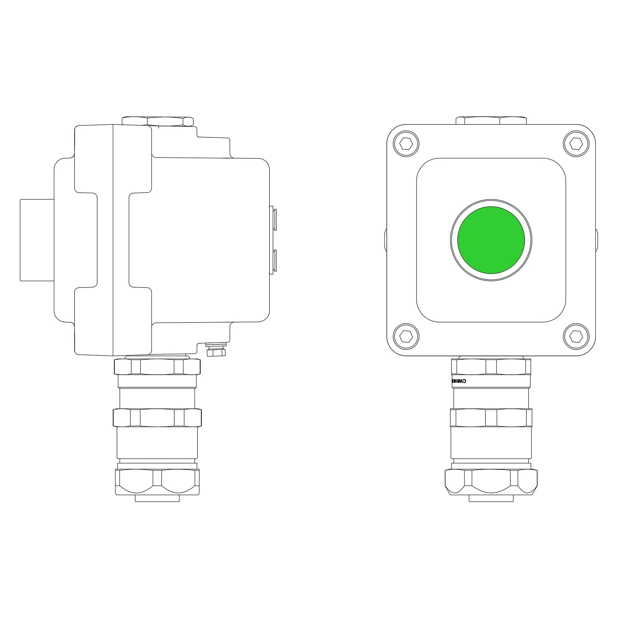 LCSD-01-B-MC-L1G(220)x1-PCMB-KA3MHK Взрывозащищенный местный пост управления из алюминия на 1 эл.управления. Маркировка: 1Ex d IIB T5 Gb / Ex tb IIIC T95°С Db / IP66 Температура окружающей среды: От -60°C до +40°C Элементы управления L1 – индикатор. Цвет Зеленый — 1шт. Кабельные вводы Снизу: Взрывозащищенный кабельный ввод серии КА для бронированного кабеляМ25х1,5 d:11,8-18мм D:15-25мм. Никелированная латунь […]