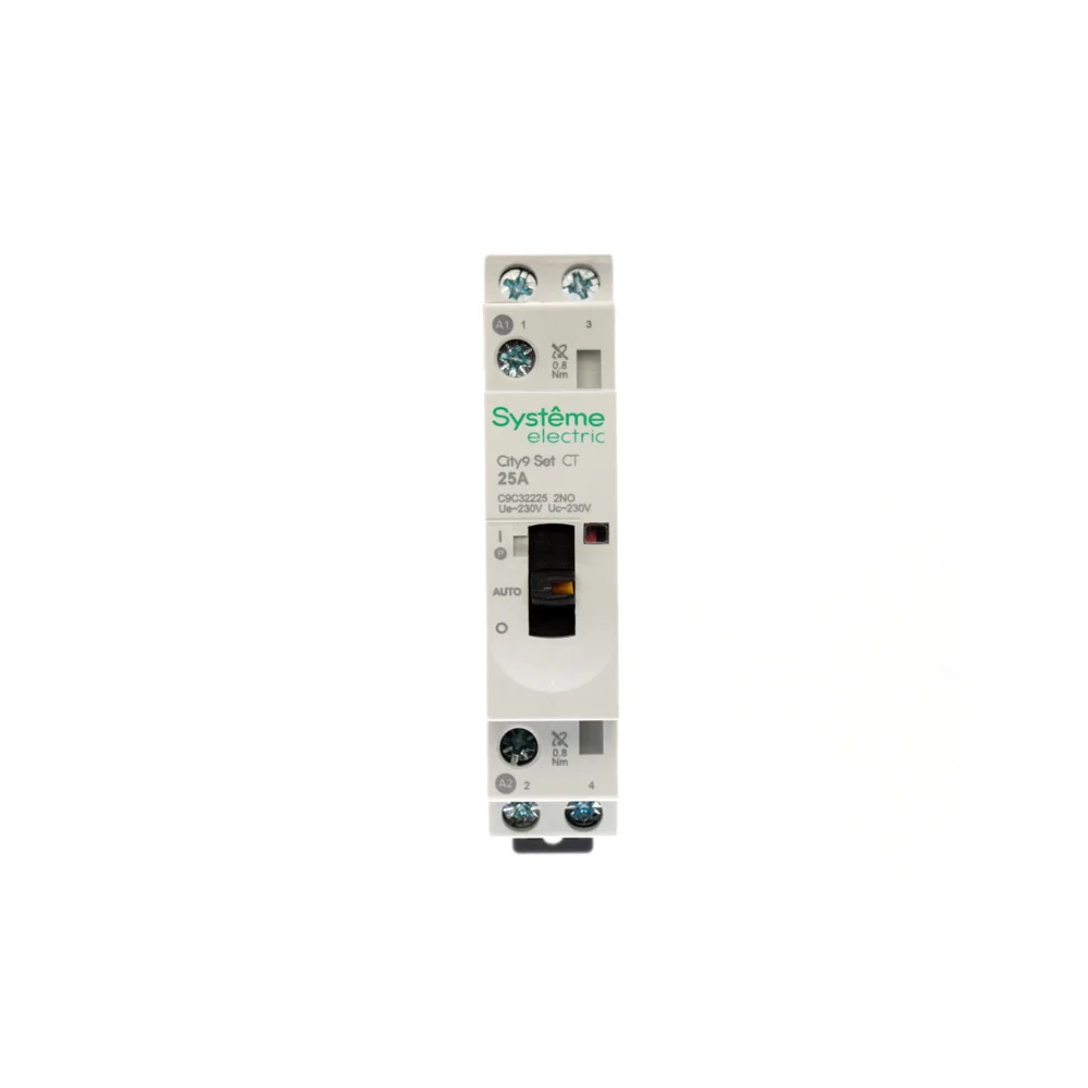 Контактор CT серии City9 Set Systeme Electric на номинальный ток 25 А (AC7a / AC7b), 2НО, номинальное напряжение силовой цепи — 230В, напряжение цепи управления — 230В, ширина 18 мм. — В сочетании с автоматическими выключателями или АВДТ обеспечивают дистанционное управление в однофазных и трехфазных цепях переменного тока (освещение, отопление, вентиляция, жалюзи и т.п.) — […]