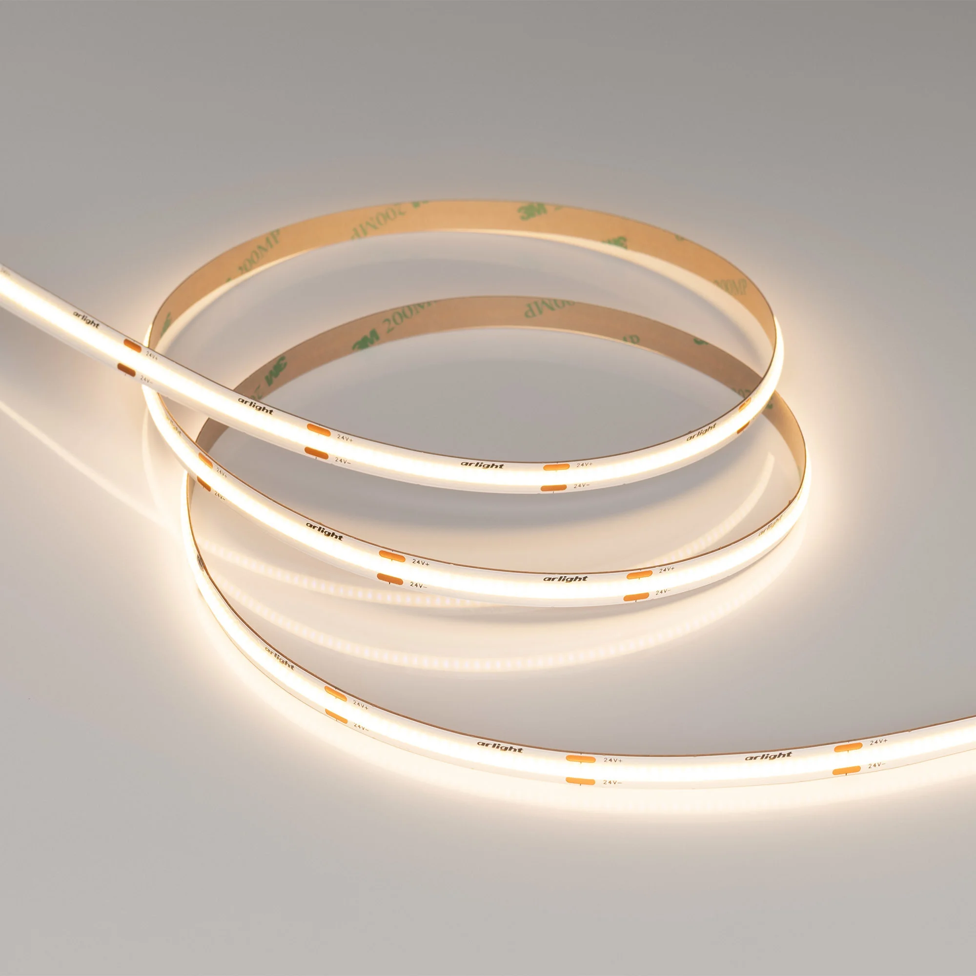 Светодиодная лента сплошного свечения COB серии X480. Светодиоды CSP, 480 шт/м, белая плата шириной 8 мм, скотч 3M. Цвет ТЕПЛЫЙ 3000K, индекс цветопередачи CRI>90, угол 180°. Питание 24 В, мощность 8 Вт/м (40 Вт на 5 м). Размеры 5000х8х1.8 мм. Мин. отрезок 50 мм. Цена за 1 м. Рекомендуется установка на профиль. Кратность заказа поставщику: […]
