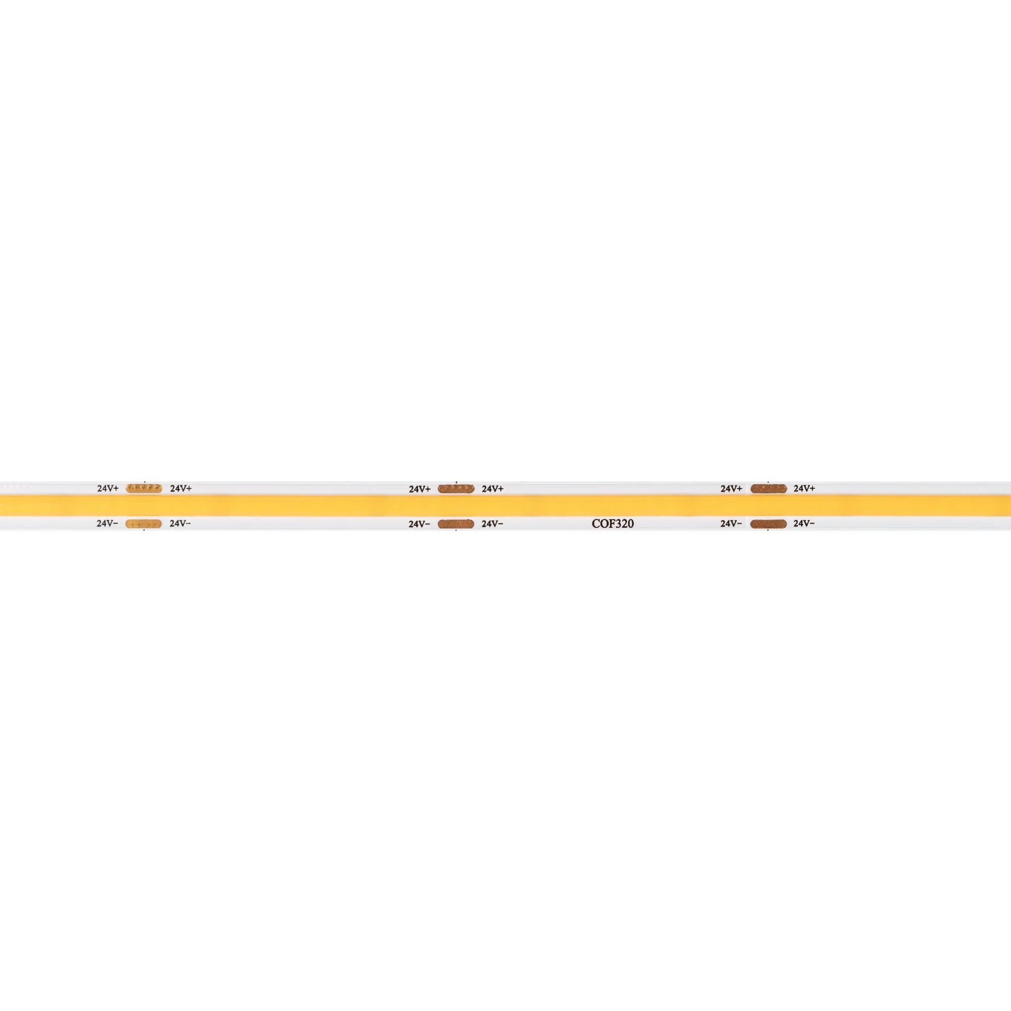 Светодиодная лента сплошного свечения COB серии X320. Светодиоды CSP, 320 шт/м, белая плата шириной 8 мм, скотч 3M. Цвет ДНЕВНОЙ 4000K, индекс цветопередачи CRI>90, угол 175°. Питание 24 В, мощность 8 Вт/м (40 Вт на 5 м). Размеры 5000х8х2 мм. Мин. отрезок 50 мм. Цена за 1 м. Кратность заказа поставщику: 5 м.