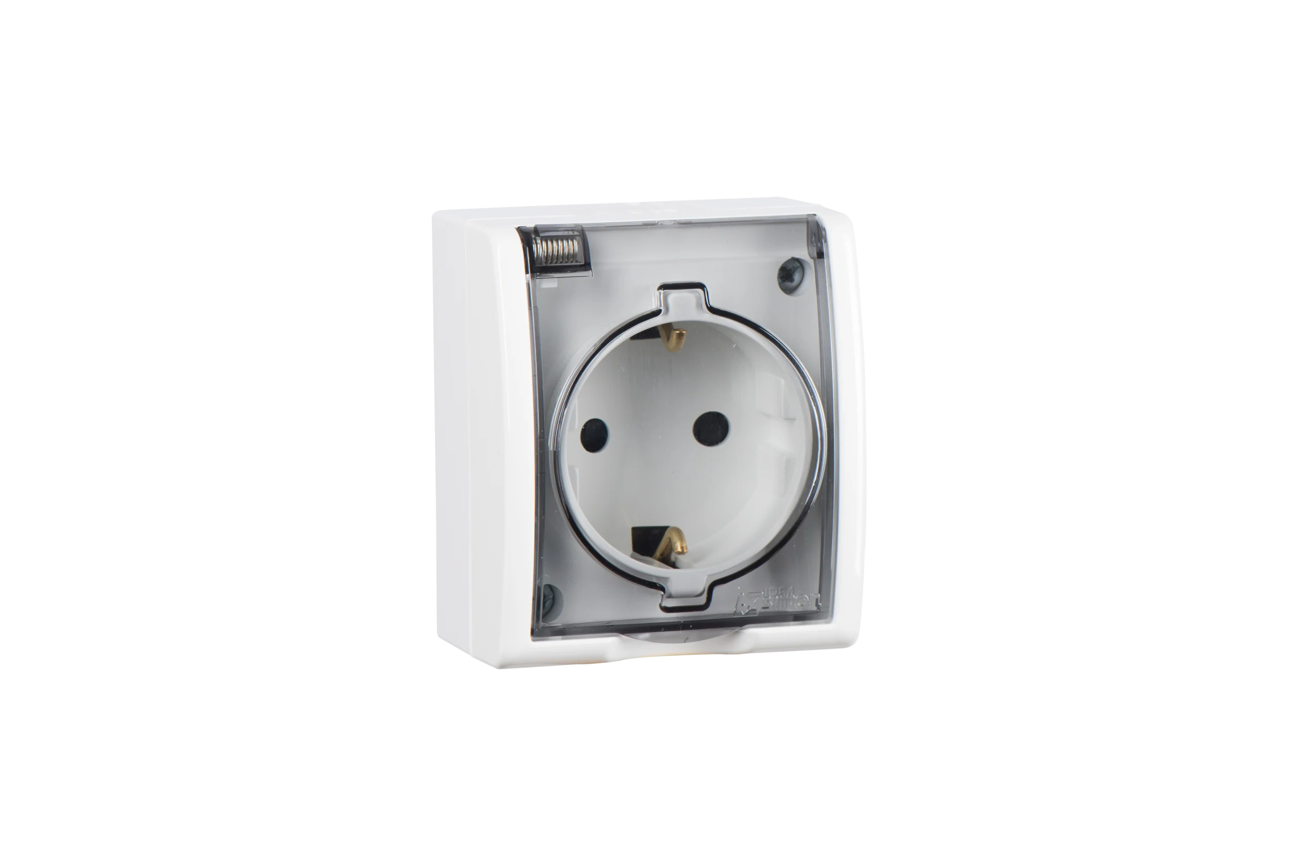 Розетка Systeme Electric (ранее Schneider Electric) BLANCA (титан, открытой установки) одноместная, с заземлением, без шторок предназначена для сетей до 250В, на ток до 16А. Заземление обеспечивает безопасность при косвенном прикосновении. Она изготовлена из ABS-пластика, проста в установке и удобна в применении.