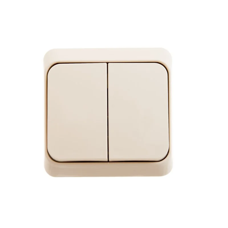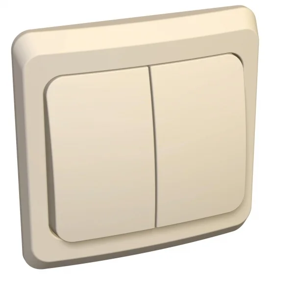 Выключатель Systeme Electric (ранее Schneider Electric) ЭТЮД (кремовый, скрытой установки) двухклавишный предназначен для применения в сетях до 250В, на ток до 10А. Две клавиши позволяют управлять двумя источниками света с одной точки. Он прост в установке и удобен применении. Сделано в России.