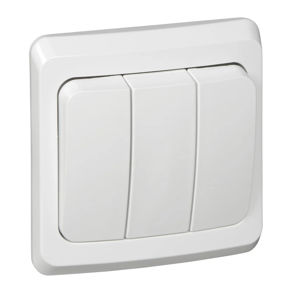 Выключатель Systeme Electric (ранее Schneider Electric) ЭТЮД (белый, скрытой установки) трёхклавишный предназначен для применения в сетях до 250В, на ток до 10А. Трёхклавишный выключатель позволяют управлять тремя источниками света с одной точки. Он прост в установке и удобен применении. Сделано в России.
