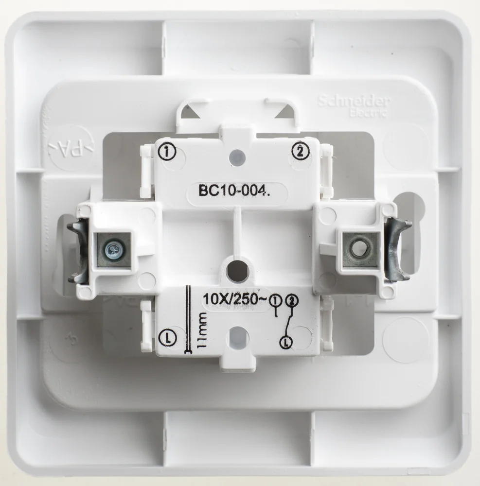 Выключатель Systeme Electric (ранее Schneider Electric) ЭТЮД (белый, скрытой установки) одноклавишный, предназначен для применения в сетях до 250В, на ток до 10А. Наличие подсветки делает его легко находимым при отсутствии освещения. Выключатель подходит для большинства типов ламп, включая люминесцентные. Сделано в России.