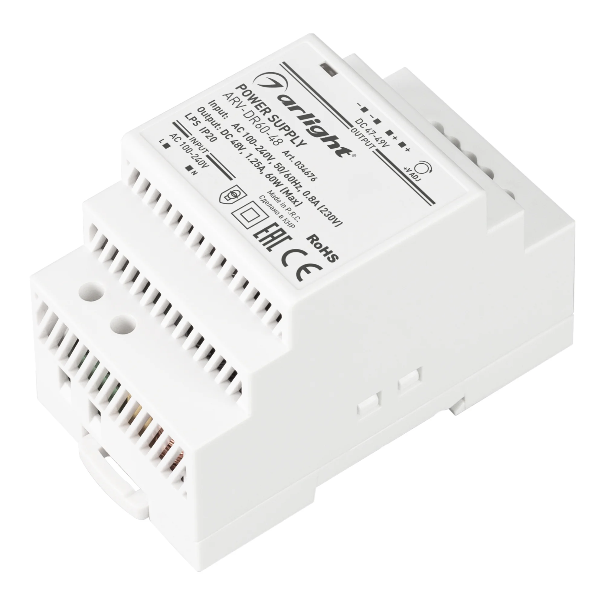 Источник напряжения с гальванической развязкой для светодиодных изделий. Входное напряжение 100-240 VAC. Выходные параметры: 48 В, 1.25 А, 60 Вт. Негерметичный пластиковый корпус IP 20 для установки на DIN-рейку. Габаритные размеры длина 58 мм, ширина 52.5 мм, высота 90 мм. Гарантийный срок 3 года. При нагрузке менее 10% после отключения от сети, повторное включение блока […]
