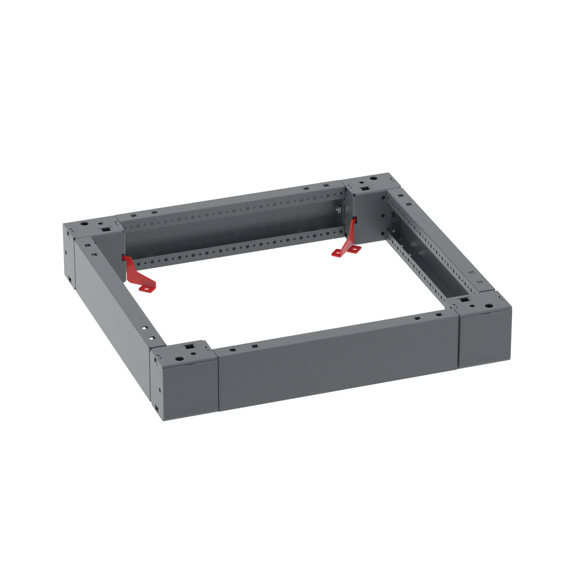 Цоколь к корпусу заказывается отдельным кодом. Он состоит из фланцев и угловых элементов. Фланцы универсальны — они могут устанавливаться как по ширине, так и по глубине шкафа. Цельносварные угловые элементы изготавливаются из оцинкованной стали толщиной 2,5 мм. Цоколь имеет порошковое покрытие RAL7011. Высота: 200 мм