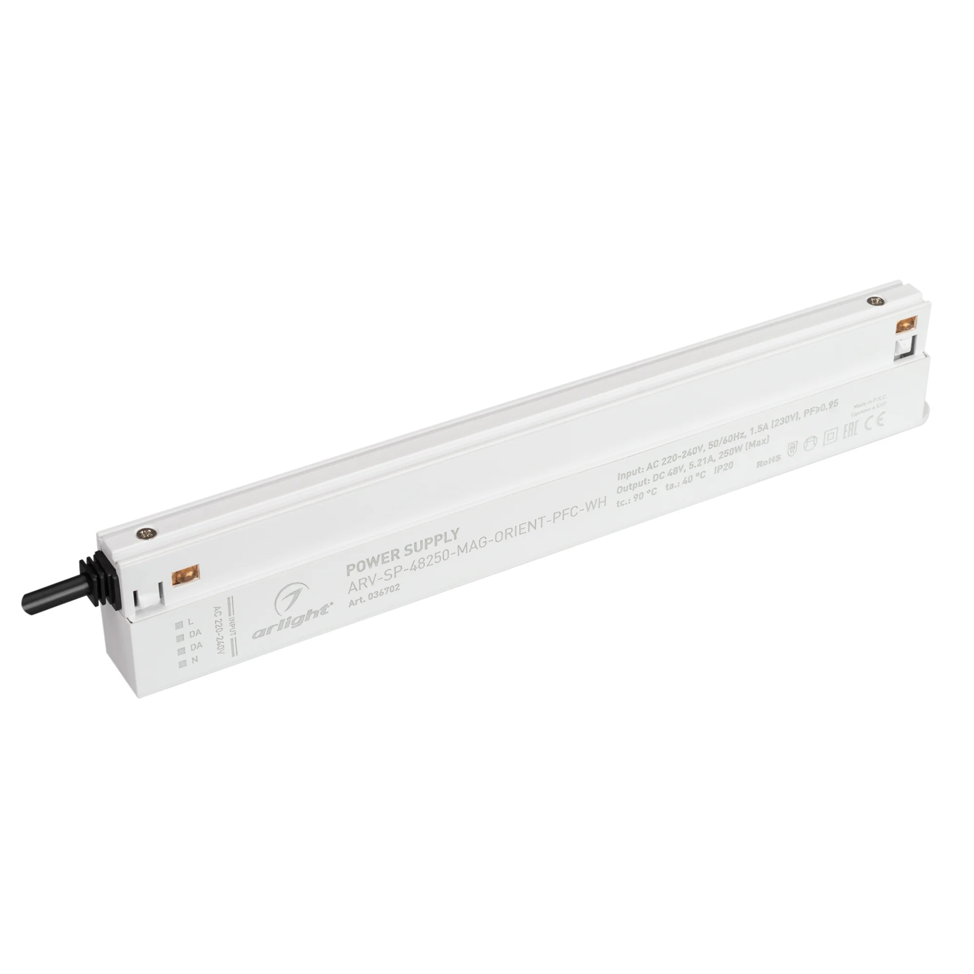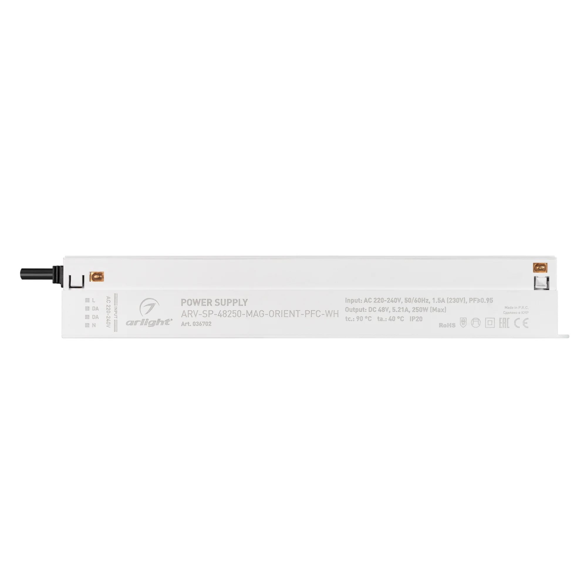 Источник напряжения с гальванической развязкой для для магнитной системы. Входное напряжение 220-240 VAC. Выходные параметры: 48 В, 5.21 А, 250 Вт. Встроенный PFC >0,95. Сверхтонкий пластиковый корпус IP20. Рабочая температура -25…+40C°. Габаритные размеры длина 268 мм, ширина 22 мм, высота 44 мм. Гарантийный срок 5 лет.