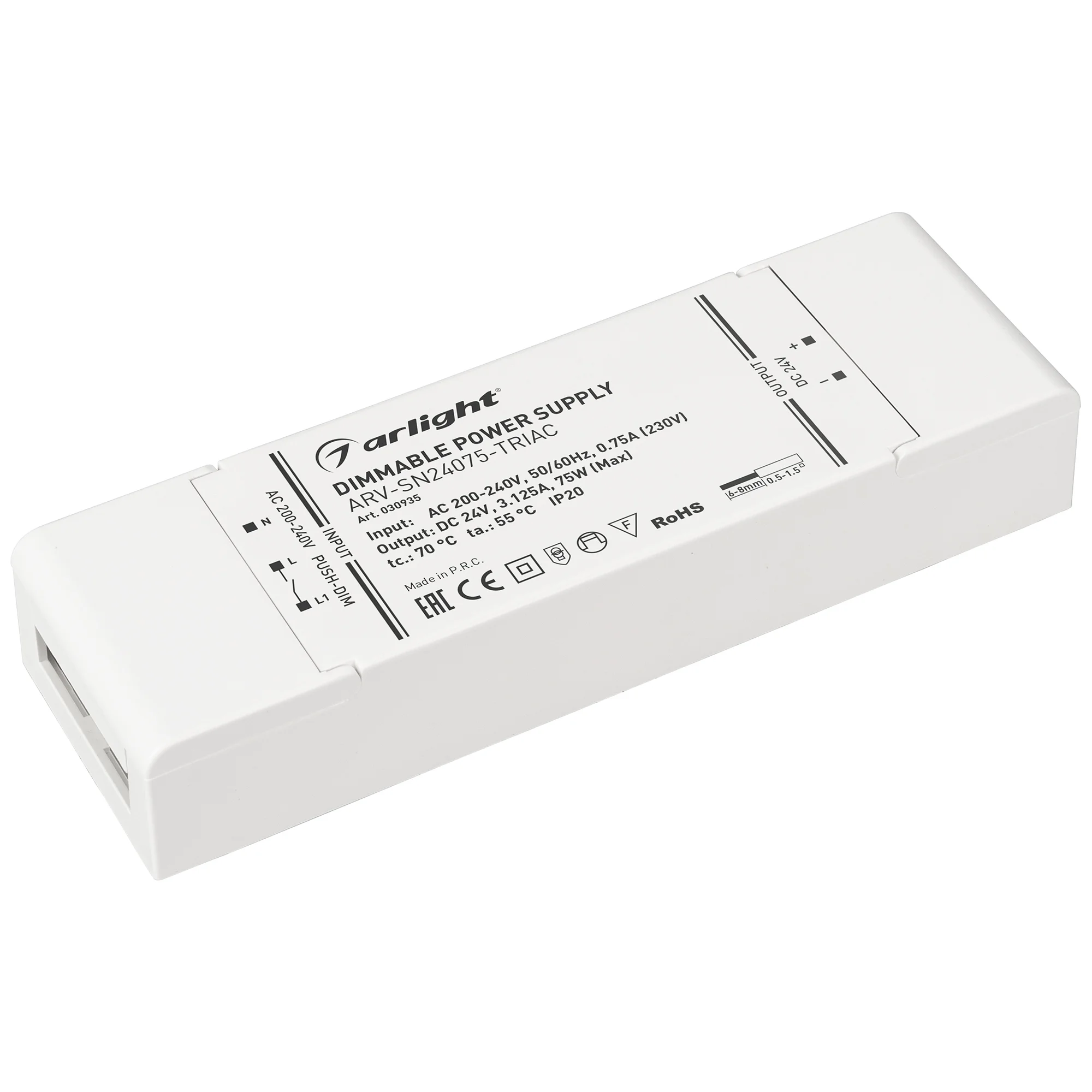 Блок питания 24V с гальванической развязкой, ток 3,125А, 75 Вт, с управлением от симисторного настенного диммера (TRIAC) и/или с помощью функции Push-dim, без корректора мощности, PF>0,5. Рекомендуется для использования с настенными диммерами типа RL (резистивная нагрузка, Leading edge). Пластиковый корпус IP20. Вход: 200-240VAC. Выход: 24VDC 3.125A. Размер 179х56х30 mm. Гарантия 3 года. Не совместим с […]