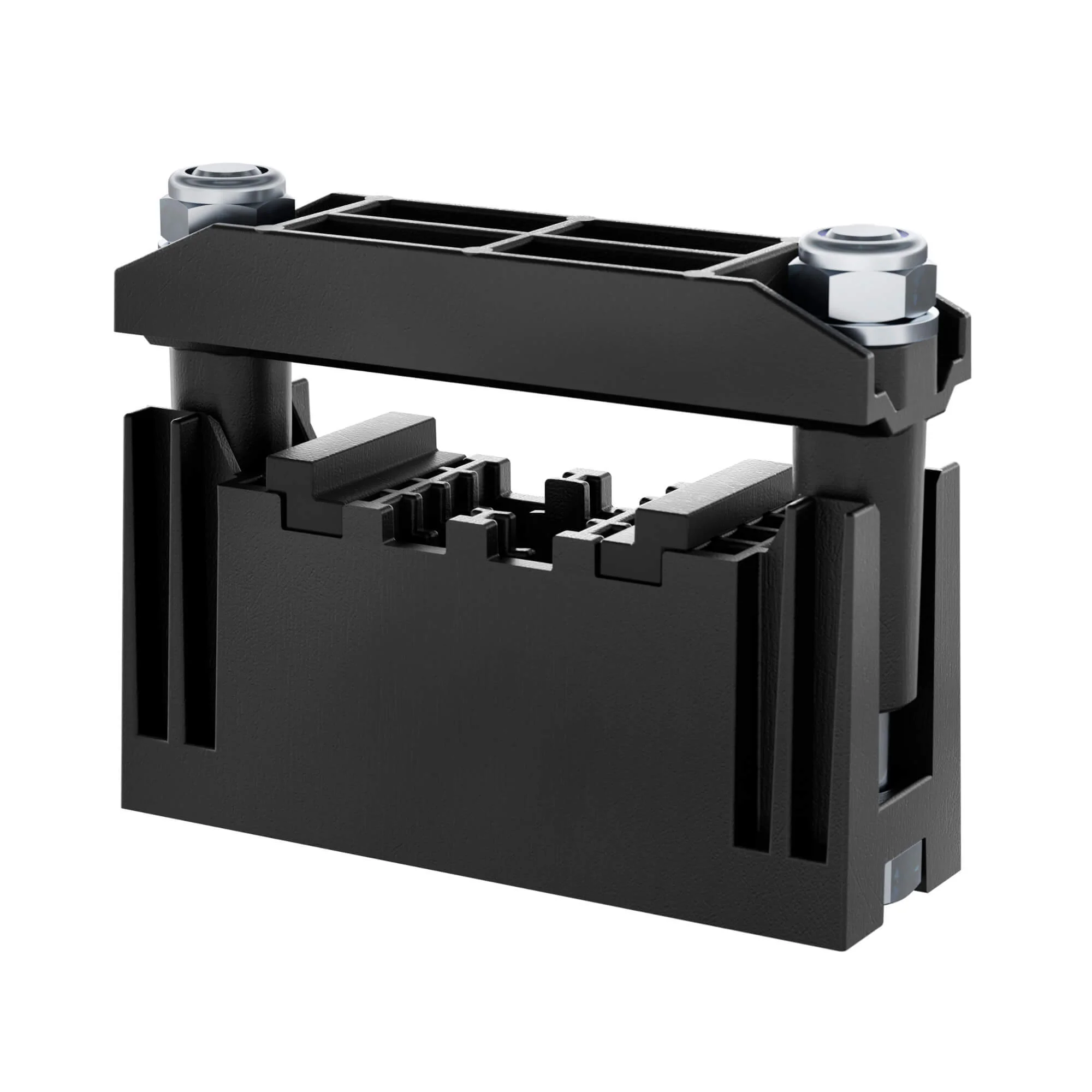 Изолятор ступенчатой системы шин предназначен для надежного крепления токоведущей шины сечением от 20х5 до 50х10 благодаря передвигаемым проставкам.