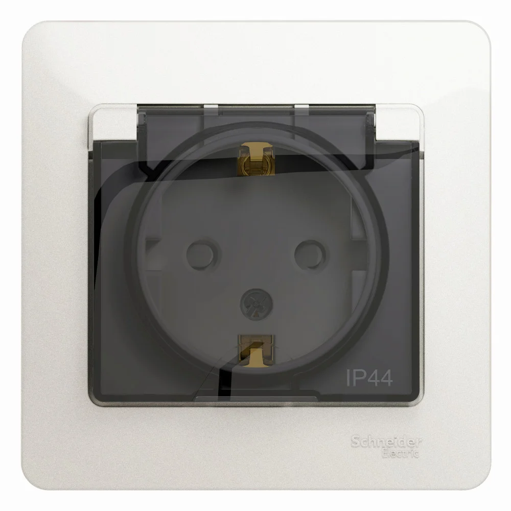 Розетка Systeme Electric (ранее Schneider Electric) серии Glossa (в сборе, цвет перламутр) одинарная с заземлением, шторками и крышкой подходит для сетей 250 В, на ток 16 А. — Изделие со степенью защиты IP44 обеспечит безопасность использования в ванной и на кухне. — Заземляющий контакт обеспечивает дополнительную защиту от удара электрическим током. При наличии заземления электрический […]