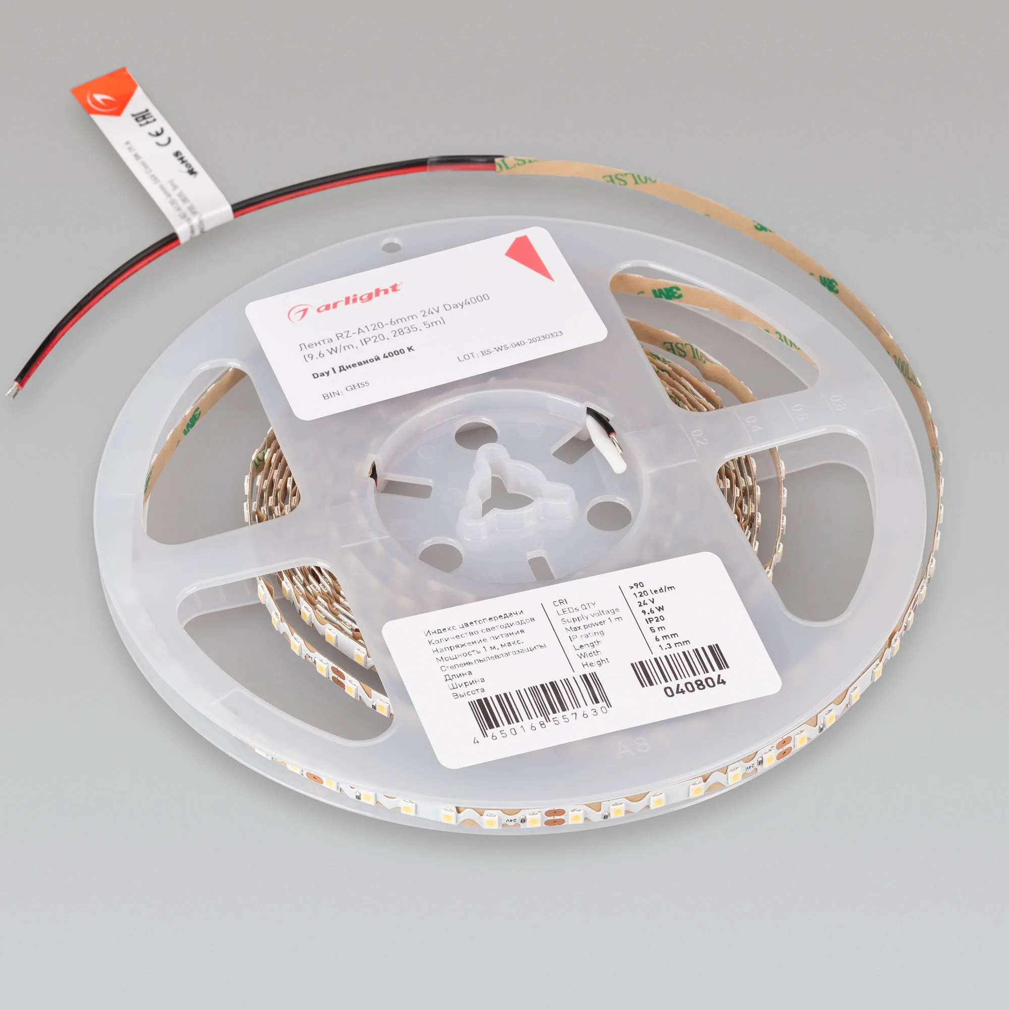 Arlight Лента RZ-A120-6mm 24V Day4000 (9.6 W/m, IP20, 2835, 5m) (-)