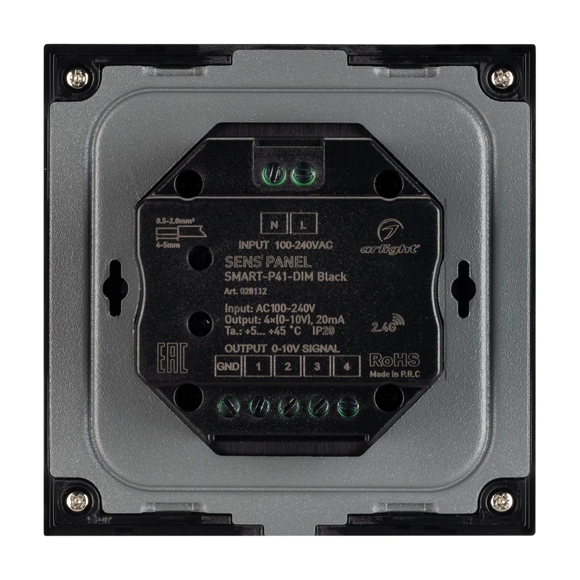 Arlight Панель SMART-P34-DIM-IN Black (230V, 0-10V, Sens, 2.4G) (IP20 Пластик, 5 лет)