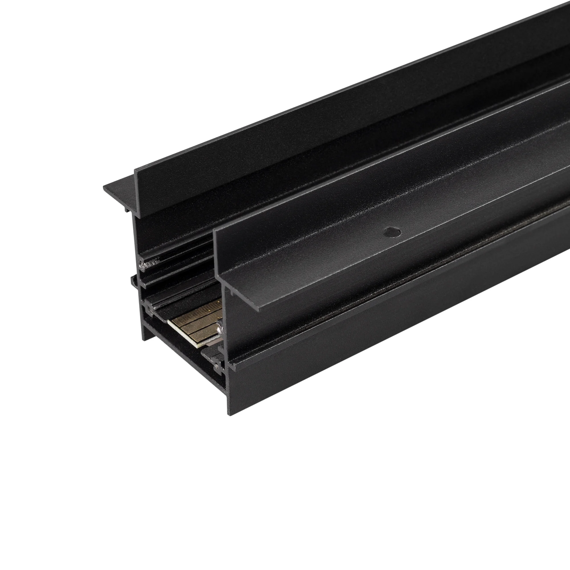 Встраиваемый магнитный трек с фланцем для монтажа в гипсокартонный потолок, длина 2000 мм. DC24V. Материал алюминий, цвет черный. Две заглушки в комплекте. Размер ДxШxВ: 2000x75x60 мм. Размер (с учетом заглушек и фланцев) ДxШxВ: 2040x75x60 мм. DC24V.
