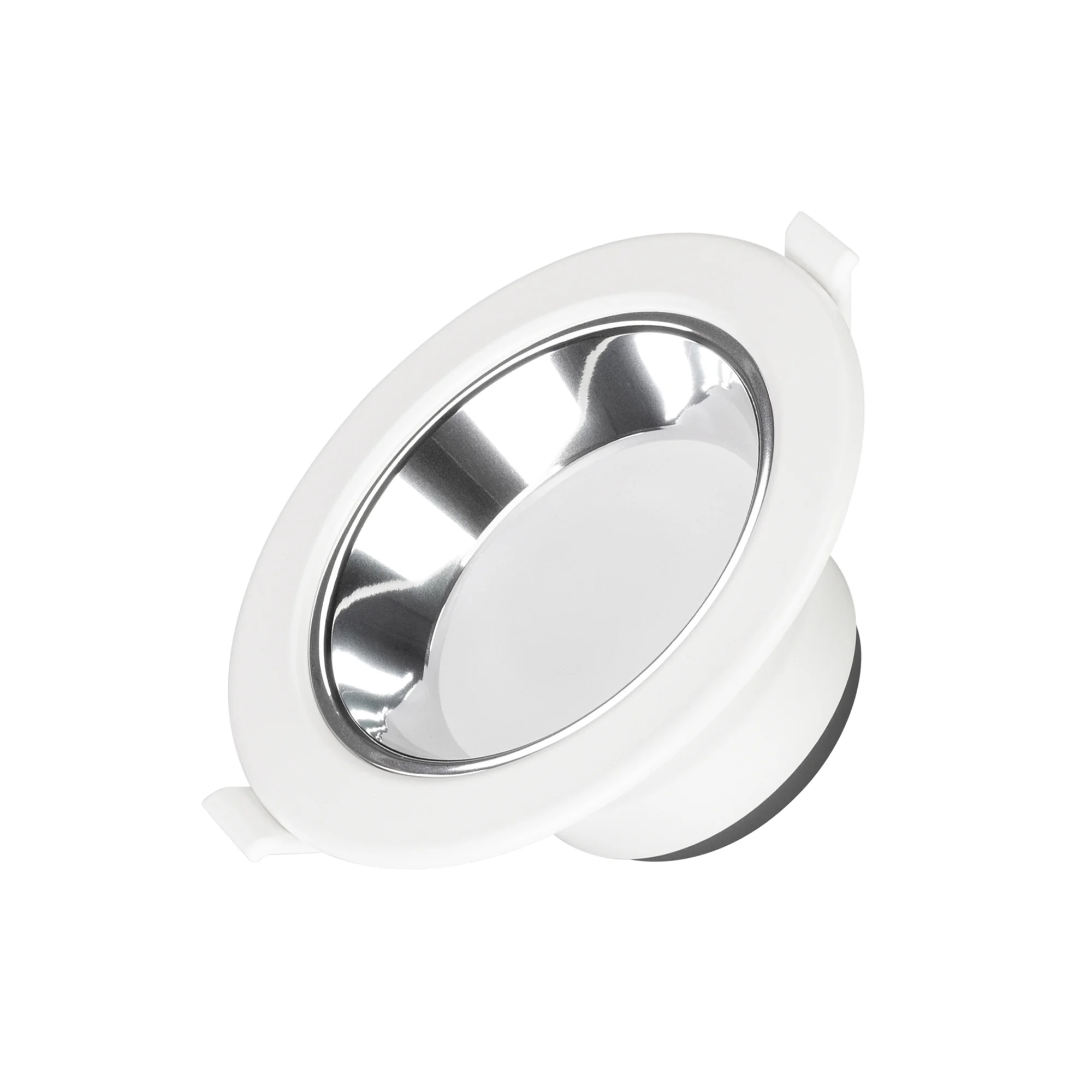 Светильник даунлайт с изменяемой цветовой температурой и выключателем на корпусе. Мощность 6 Вт, св. поток 550 лм, 92 лм/Вт, белый 6000К, или дневной 4000К, или теплый 3000К (выбор цвета свечения при установке, фиксированный), CRI>80, угол 80°, напряжение питания 230 В. Белый круглый корпус из алюминия, степень защиты IP20. Размер: диаметр 95 мм, высота 52 мм. […]