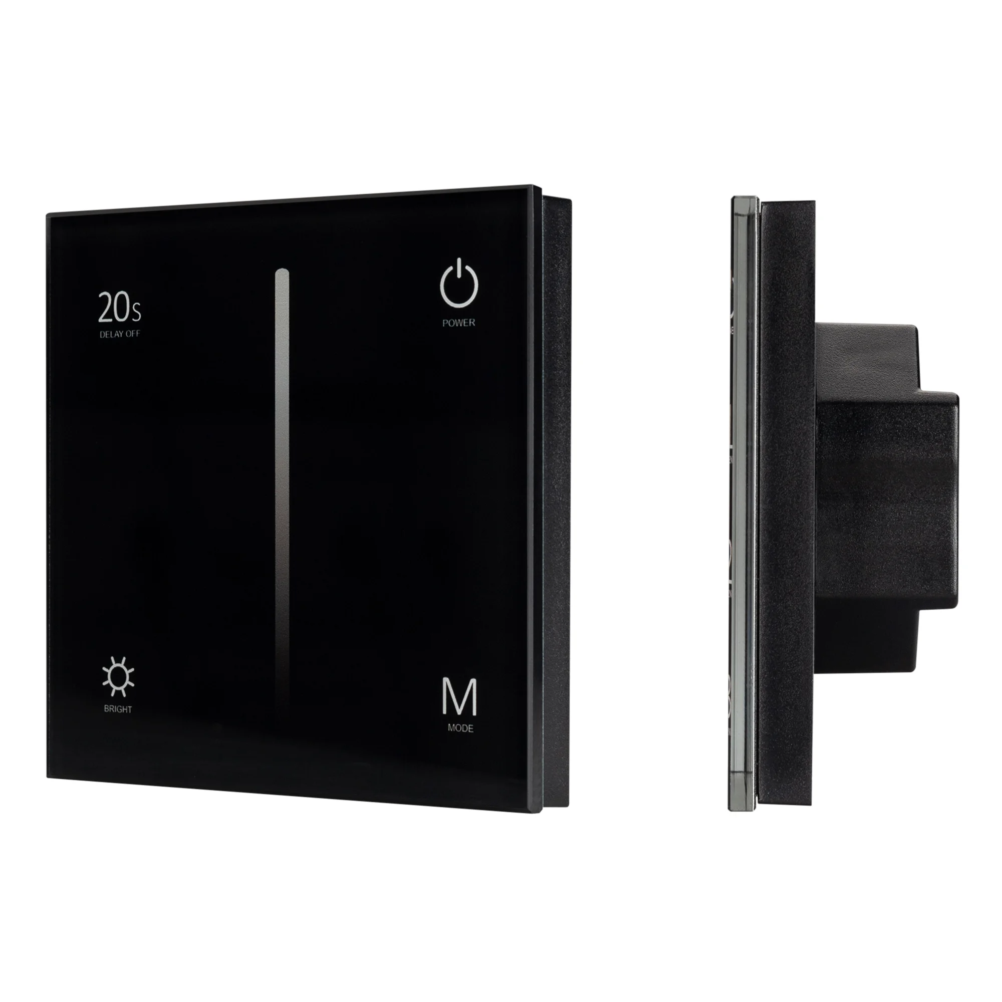 Встраиваемая сенсорная стеклянная панель 2.4 ГГц, цвет чёрный. Для управления температурой свечения (MIX/CCT) и яркостью с помощью сенсорной полосы. Питание/рабочее напряжение AC 100-240V, 4 зоны управления, память 4 сцен. Функция управления DMX512 устройствами. Габариты 86х86х35 мм. Панель совместима с контроллерами и пультами серии SMART.
