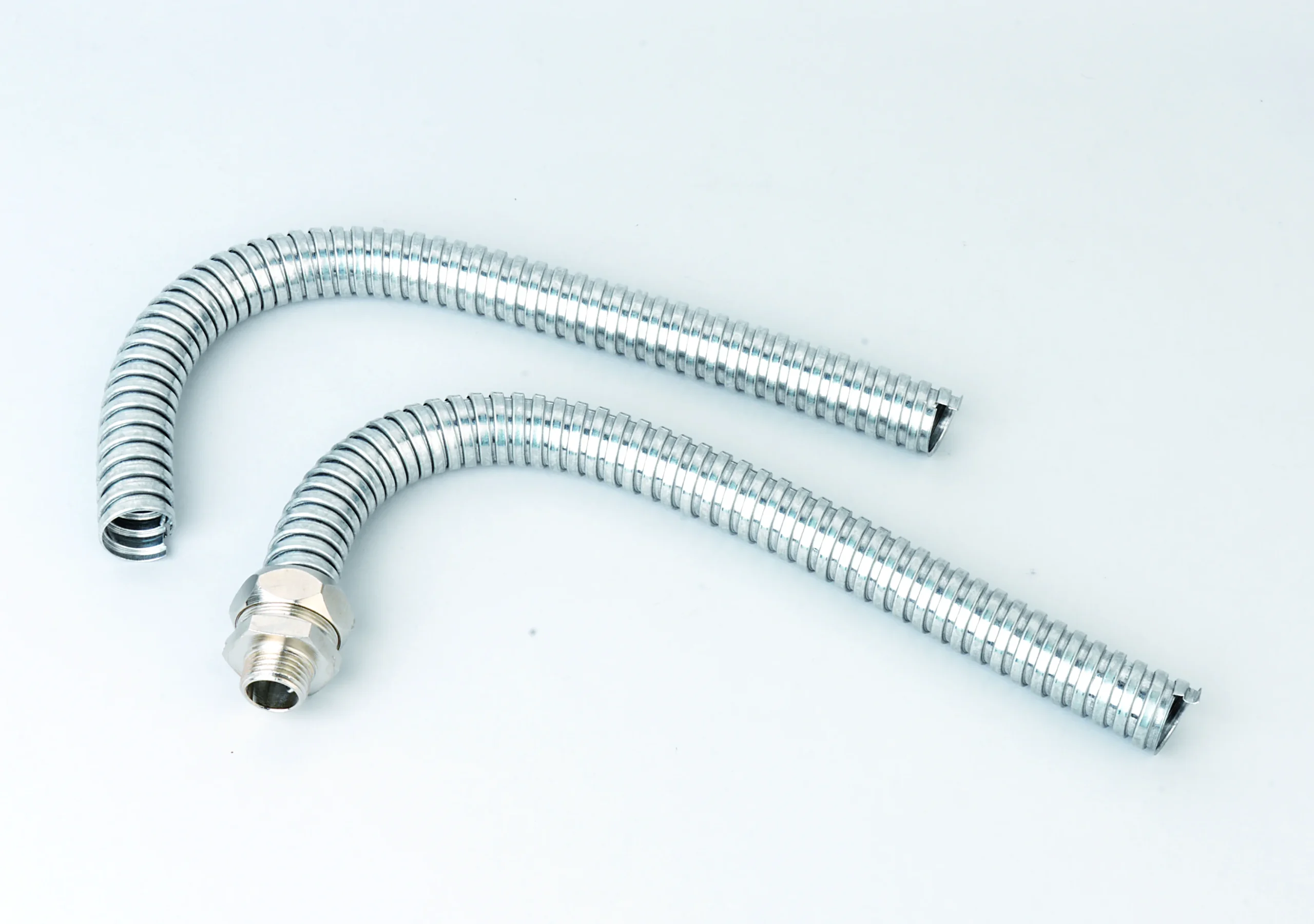 Гибкие металлические трубы могут прокладываться под удобным углом, что повышает адаптивность системы под различные задачи и облегчает монтаж. Отличительные особенности металлорукавов — гибкость и высокая прочность. Металлорукав из оцинкованной стали применятся для прокладки электрических, телефонных, телевизионных проводов. Внутренний диаметр — 12 мм.