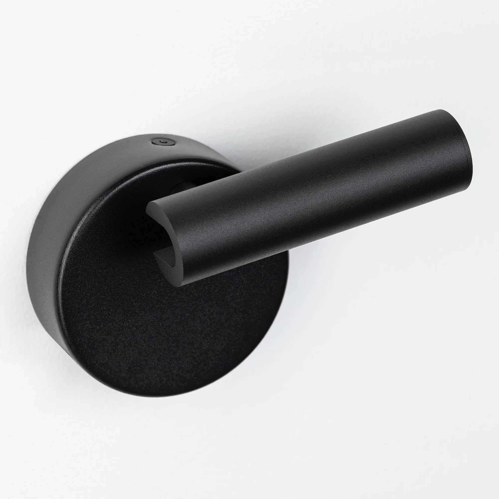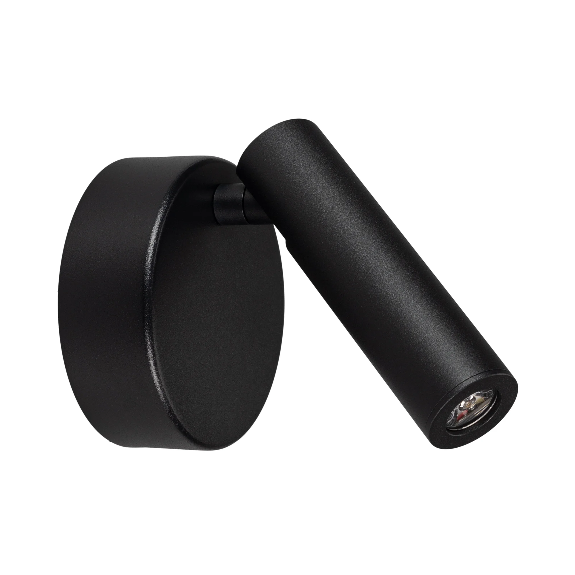 Накладной настенный светильник 3Вт, черный алюминиевый корпус без кнопки включения. Цвет ТЕПЛЫЙ БЕЛЫЙ 3000K, св.поток 200лм, CRI(Ra)>80, угол 20°.Размер Основание Ф90×31мм, Светоизлучатель Ø30×110 мм.. IP20. Питание AC220-240V, 3Вт, встроенный драйвер 2,5-4,5В, 700 мА.